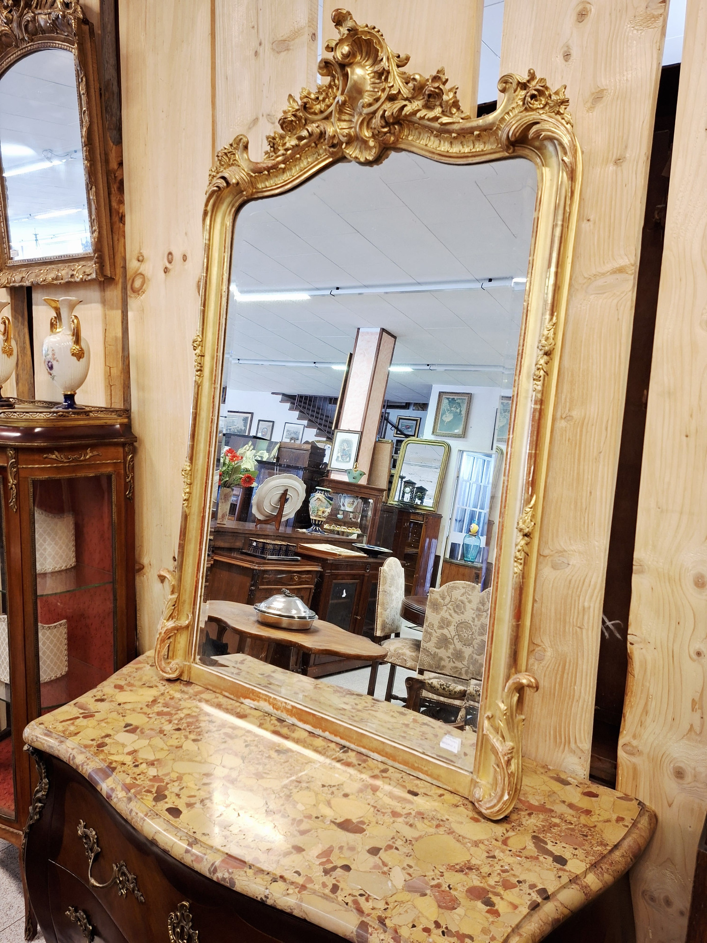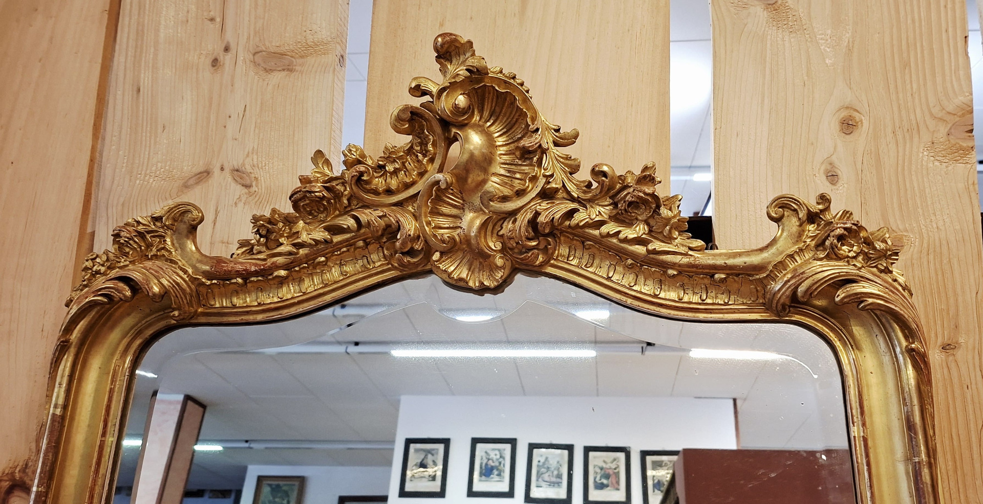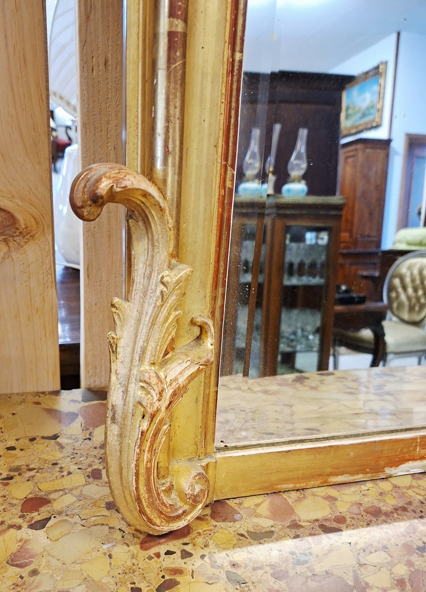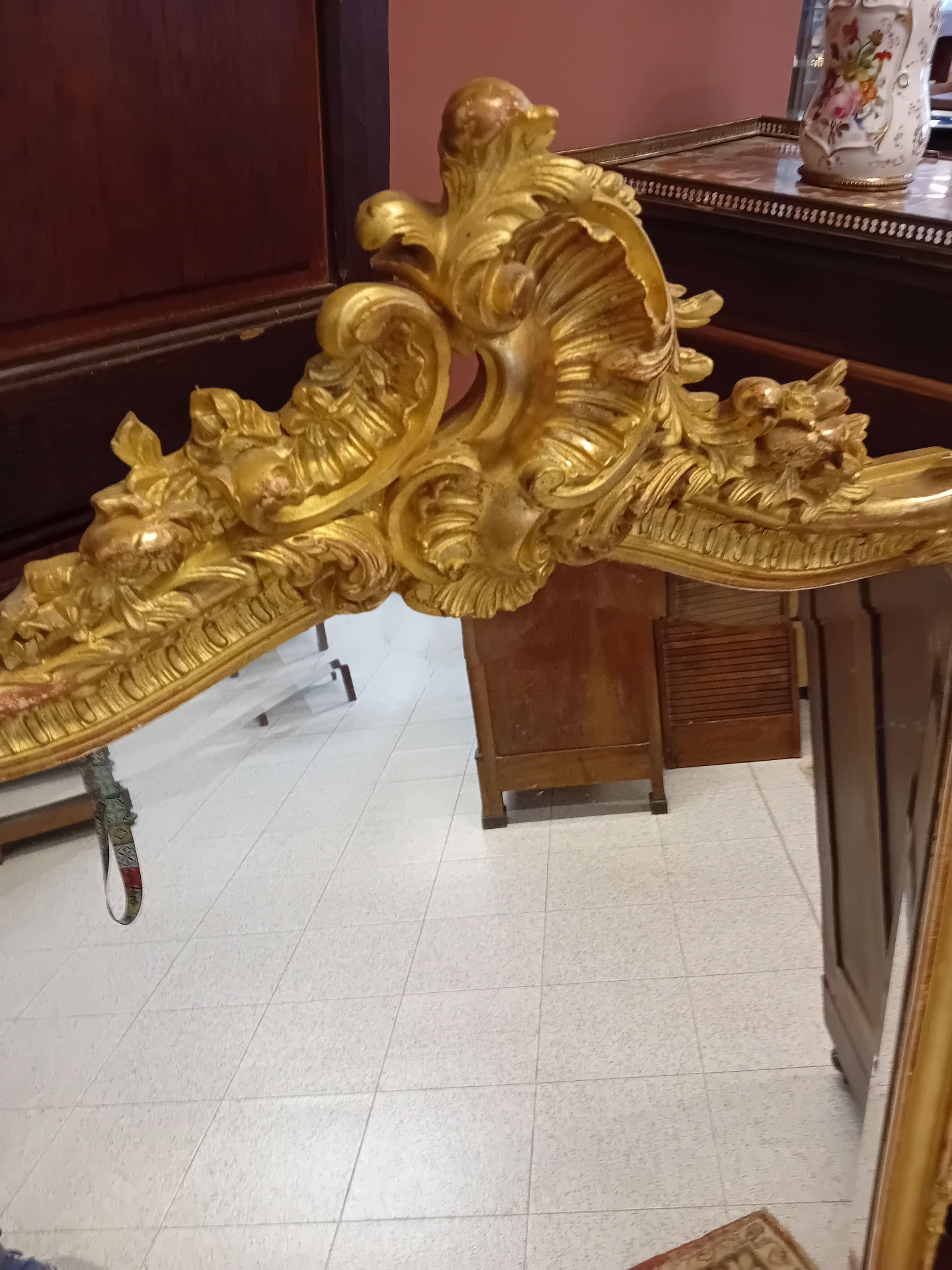 con cimasa mossa ,conchiglia ,motivi floreali a ramages lungo i lati ,foglie intagliate sui lati della base.