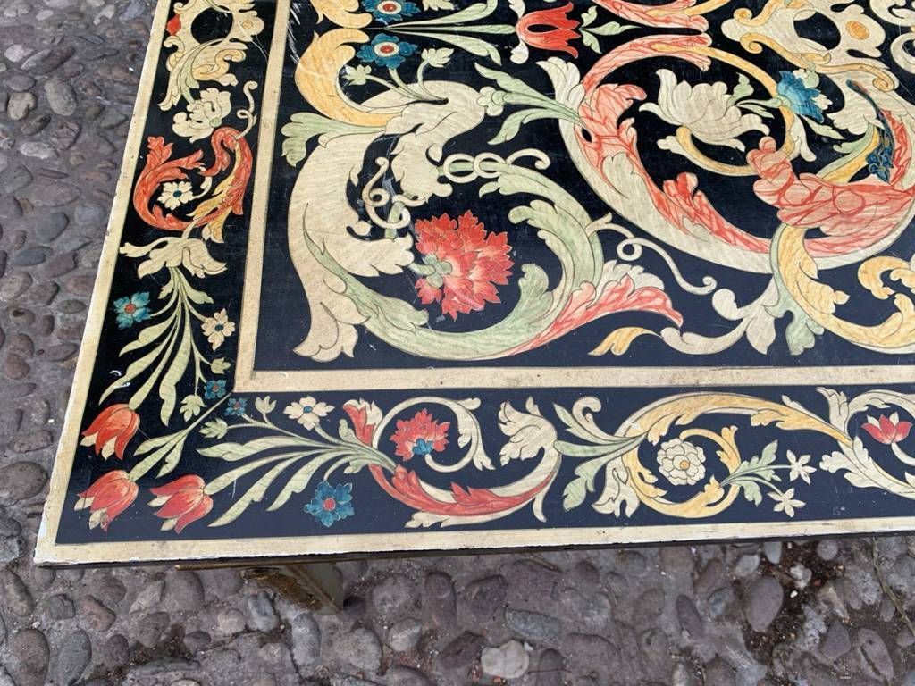 Grande tavolo scrittoio in legno intagliato e dipinto. Italia, XIX-XX secolo.