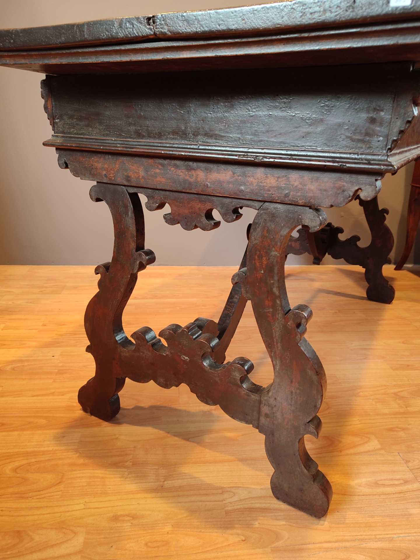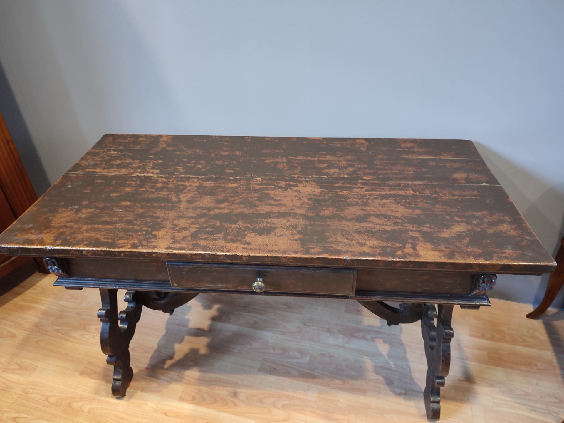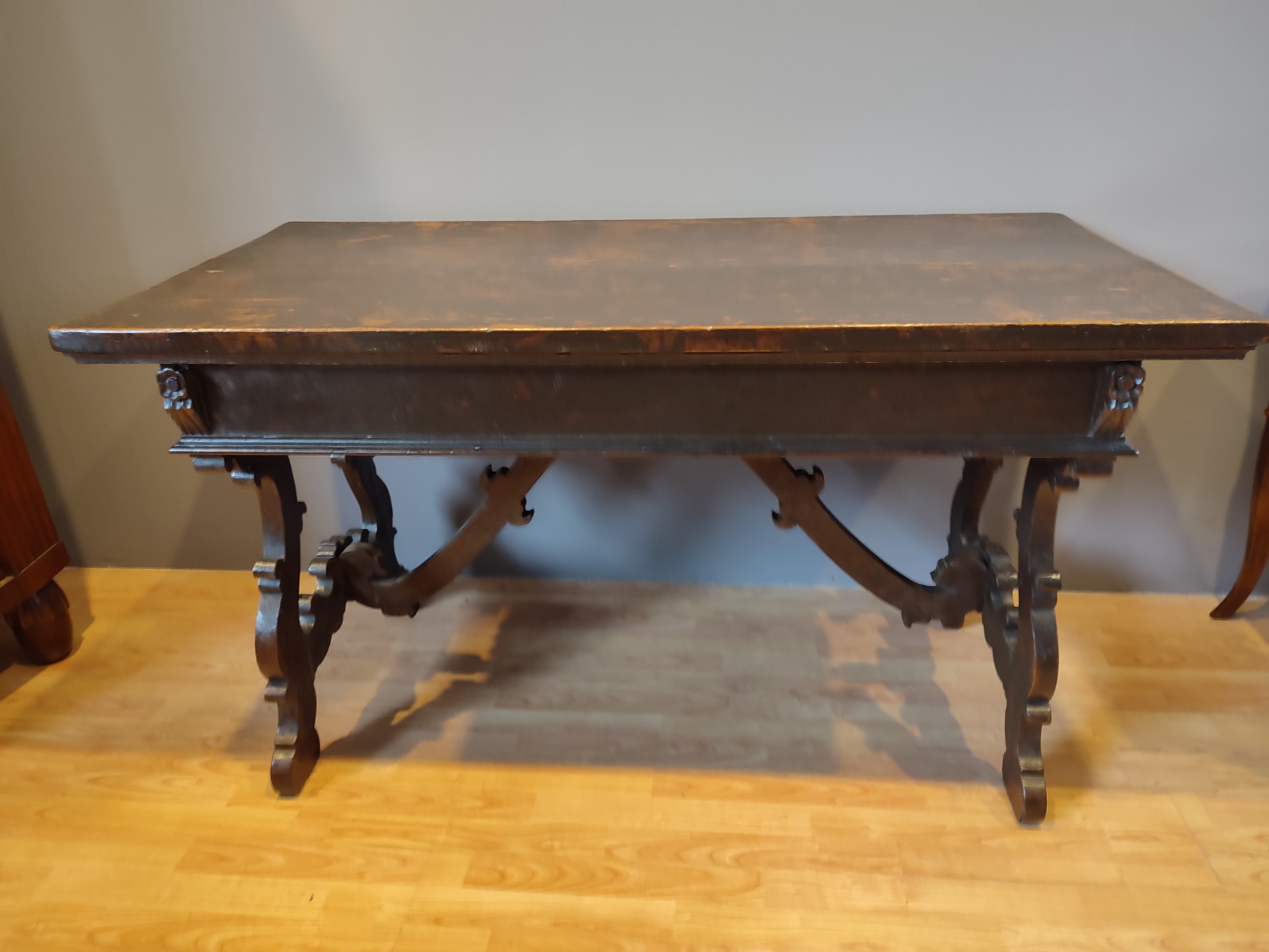 Tavolo frattino epoca 600 in noce.Interventi e restauri dovuti all epoca.Il mobile è in patina .