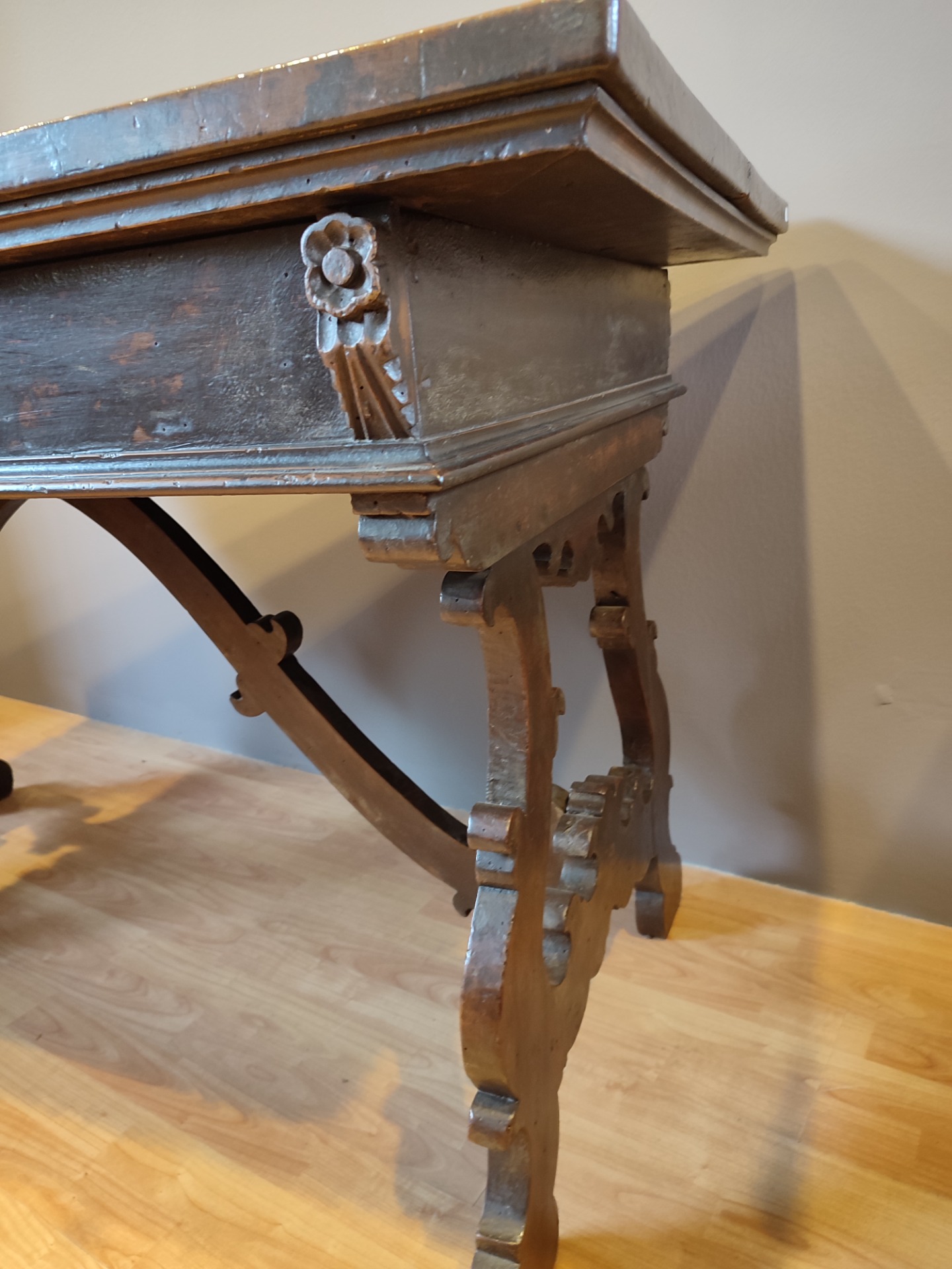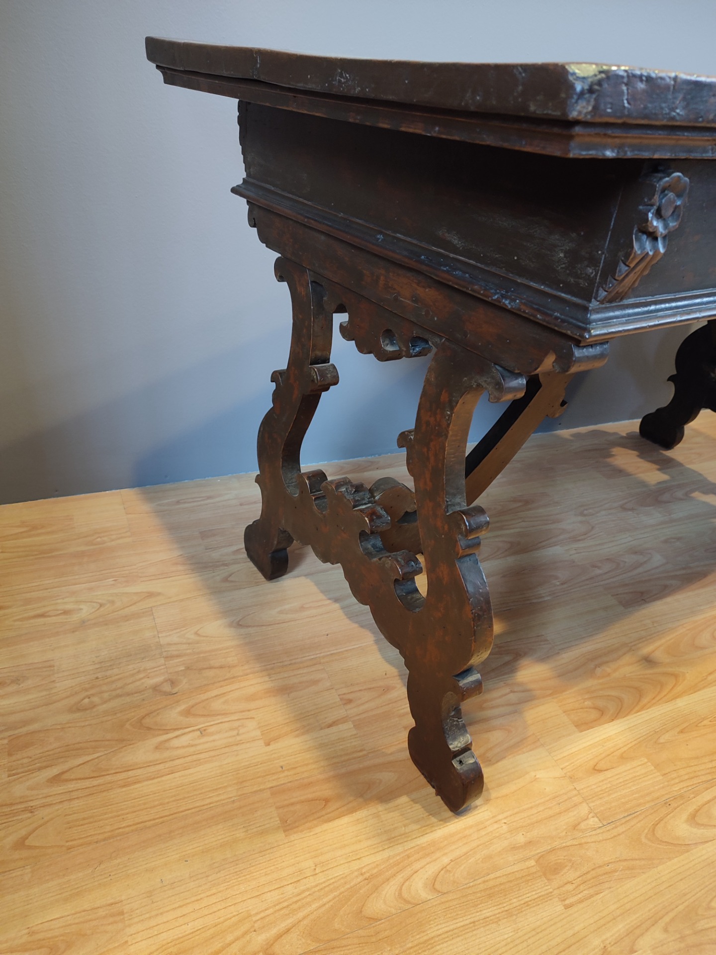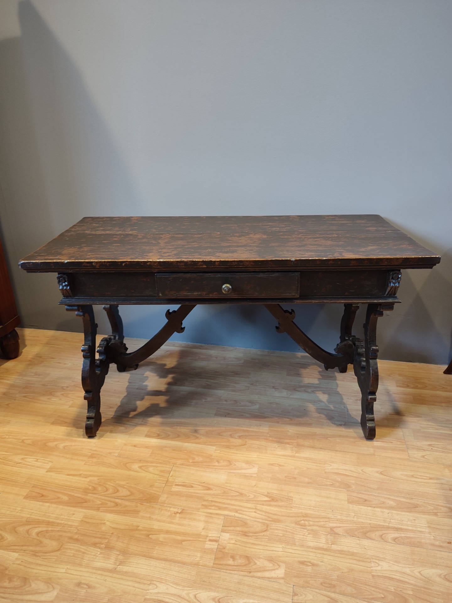 Tavolo frattino epoca 600 in noce.Interventi e restauri dovuti all epoca.Il mobile è in patina .