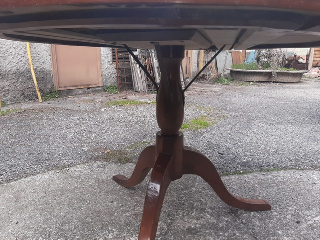 Elegante tavolo da salotto inglese della metà dell'Ottocento. Il tavolo viene consegnato rilucidato. Misure: cm 121 di diametro x 77 di altezza