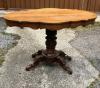 Tavolo ovale detto " a biscotto" in noce con fascia mossa e base intagliata. Misure: cm 120 x 66 x 78