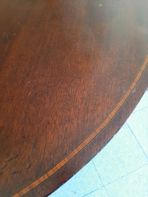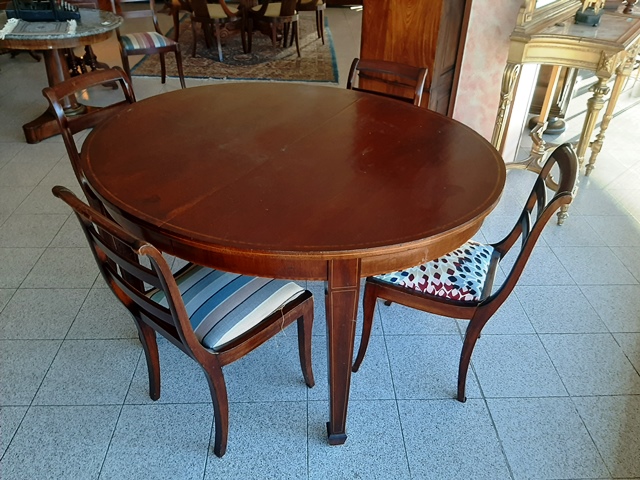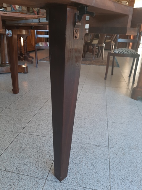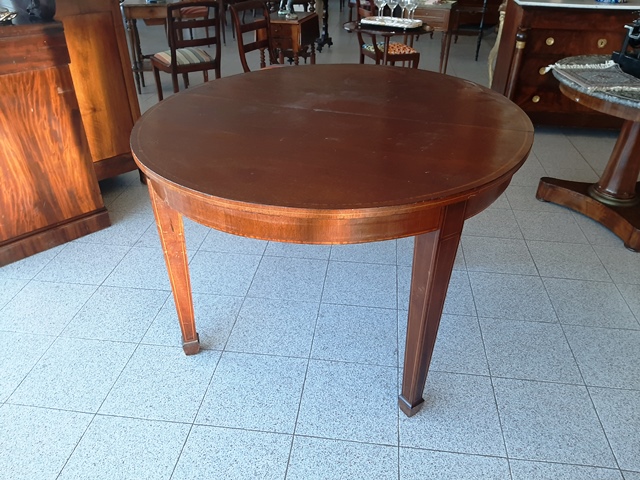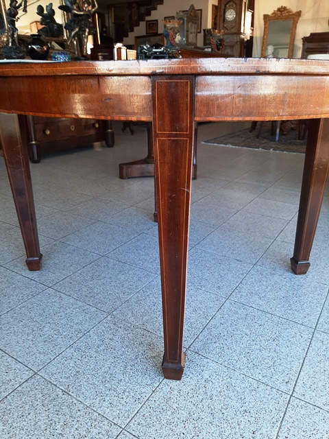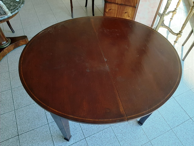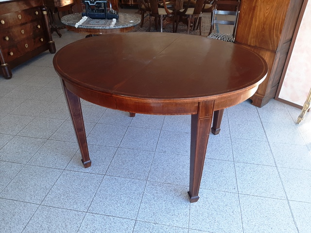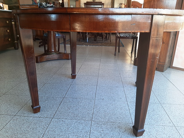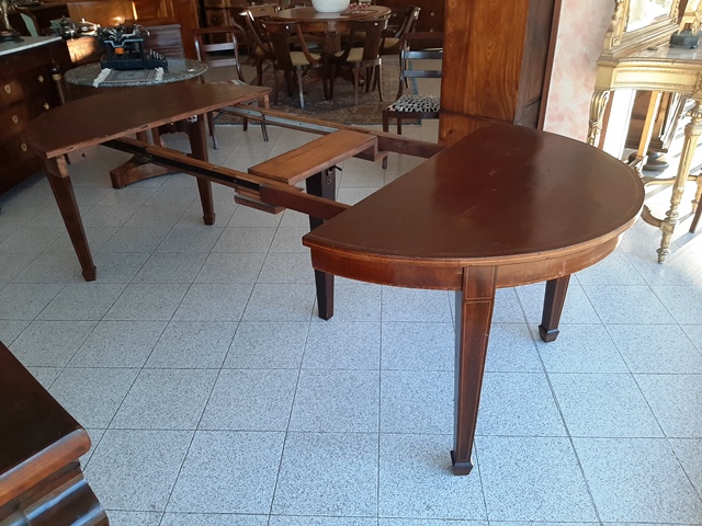 in mogano, epoca '800 con filettatura, stile Luigi XVI .Dimensioni: Lunghezza da chiuso 130 cm - Lunghezza da aperto 247 cm - Larghezza 115 cm - Altezza 77 cm