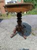 Tavolo ovale detto " a biscotto" in noce con fascia mossa e base intagliata. Misure: cm 120 x 66 x 78