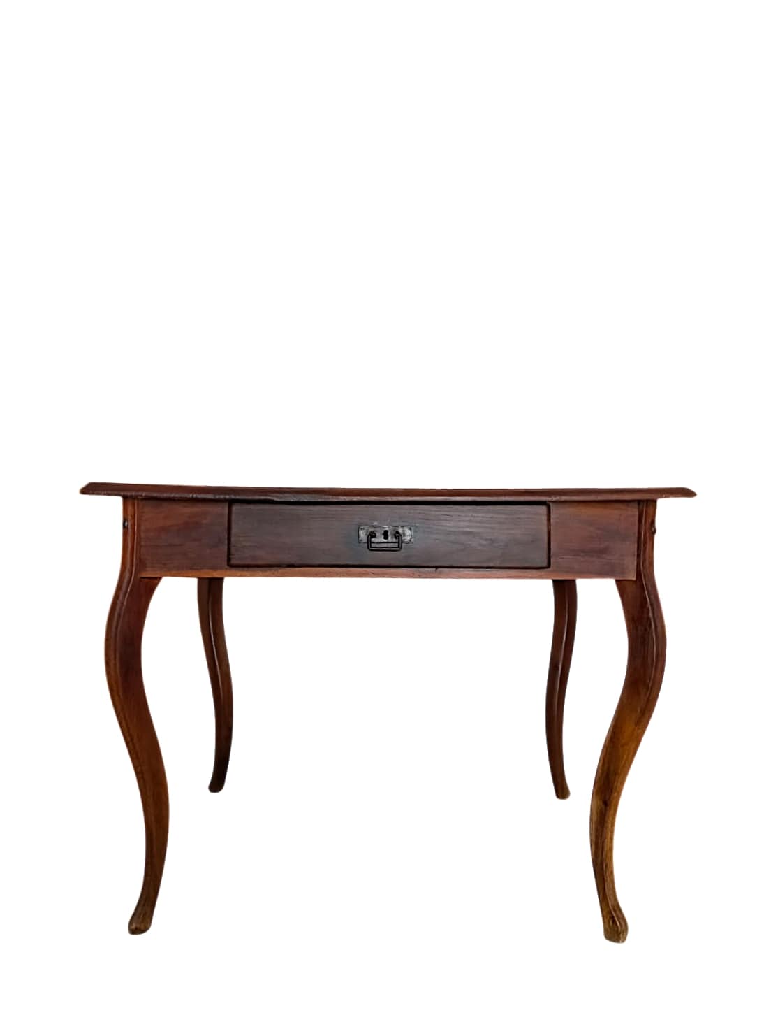 Presenta gambe a sciabola tipiche dello stile dell’epoca, che conferiscono leggerezza alla struttura.