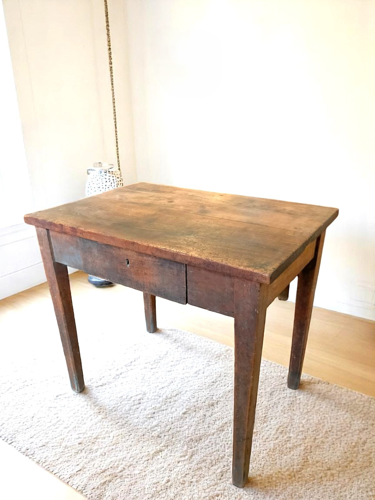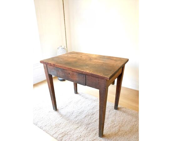 Antico tavolino Luigi XVI, di fine 1700, in legno di Ciliegio e noce, con cassetto e belle gambe rastremate.