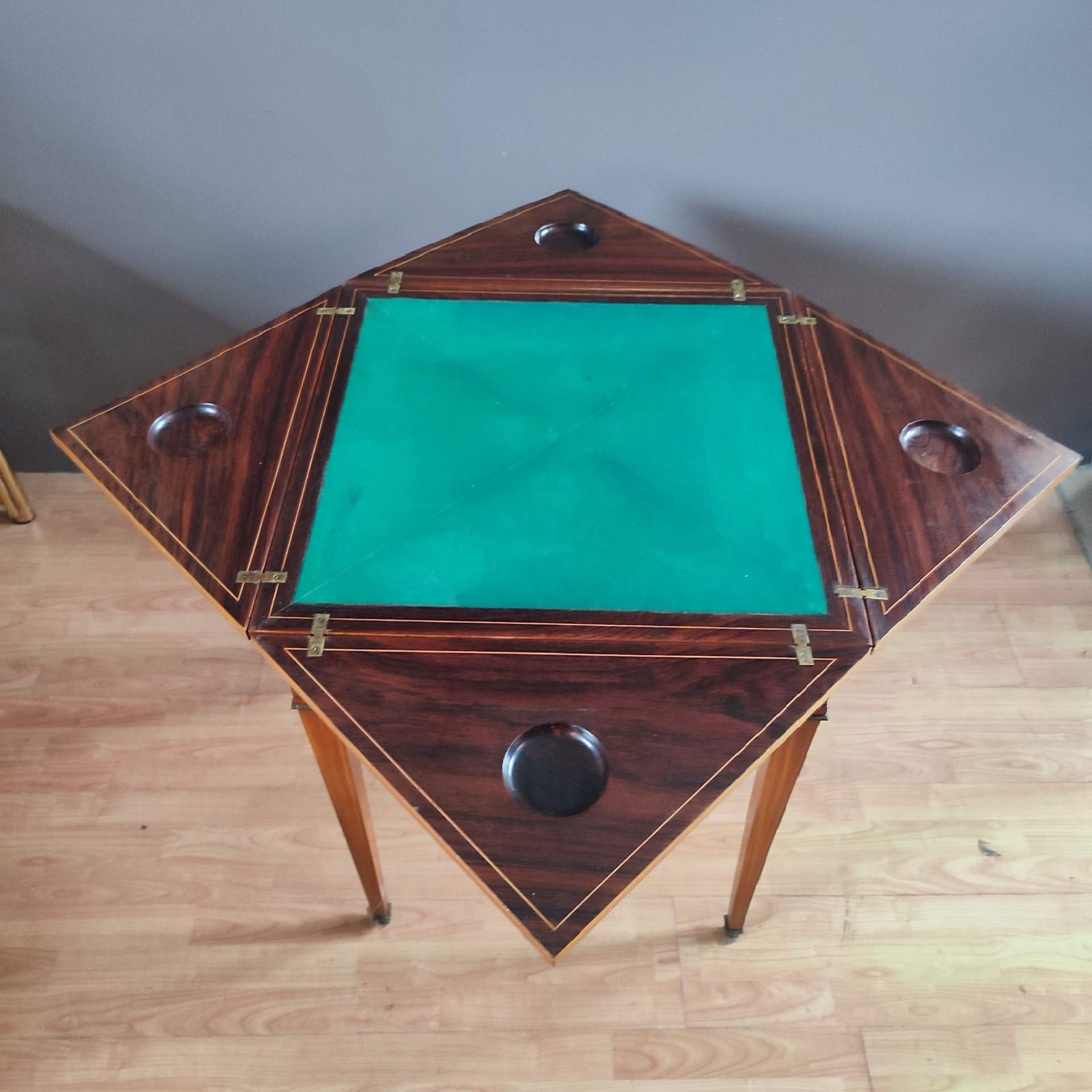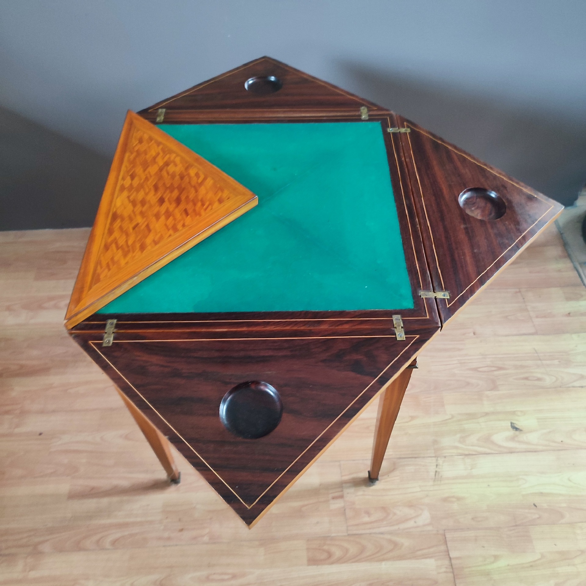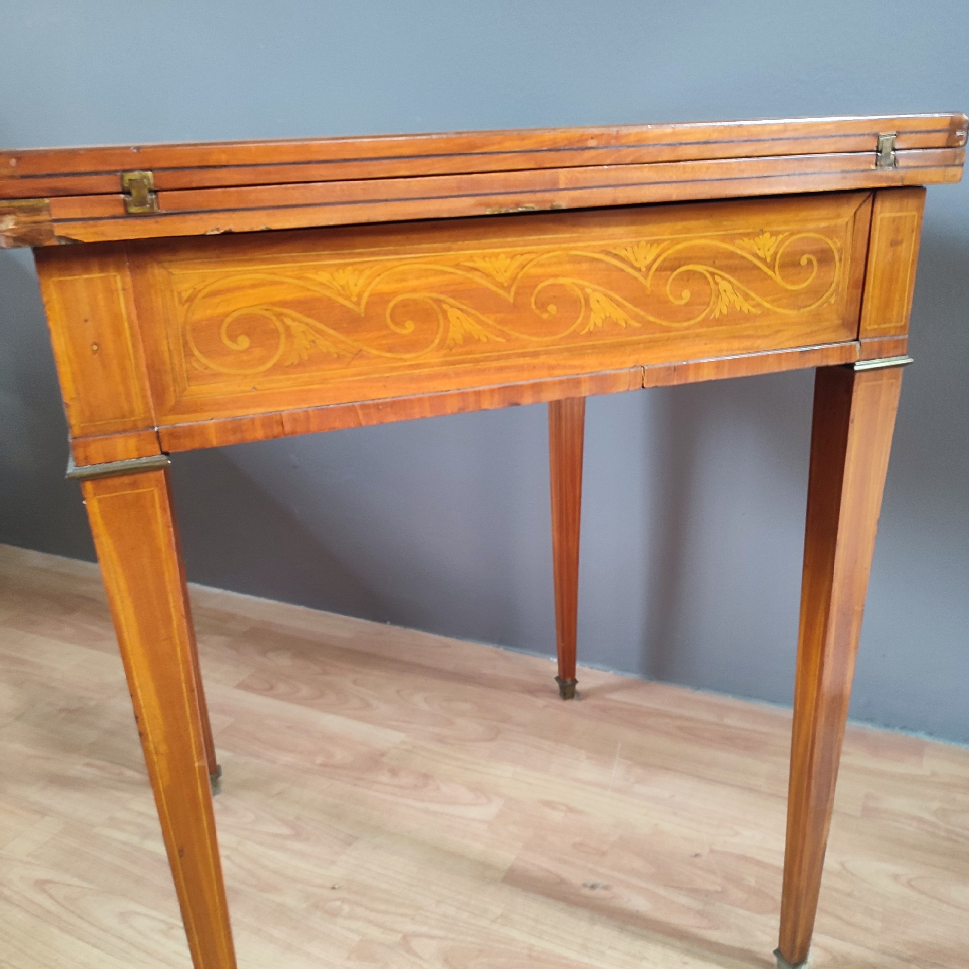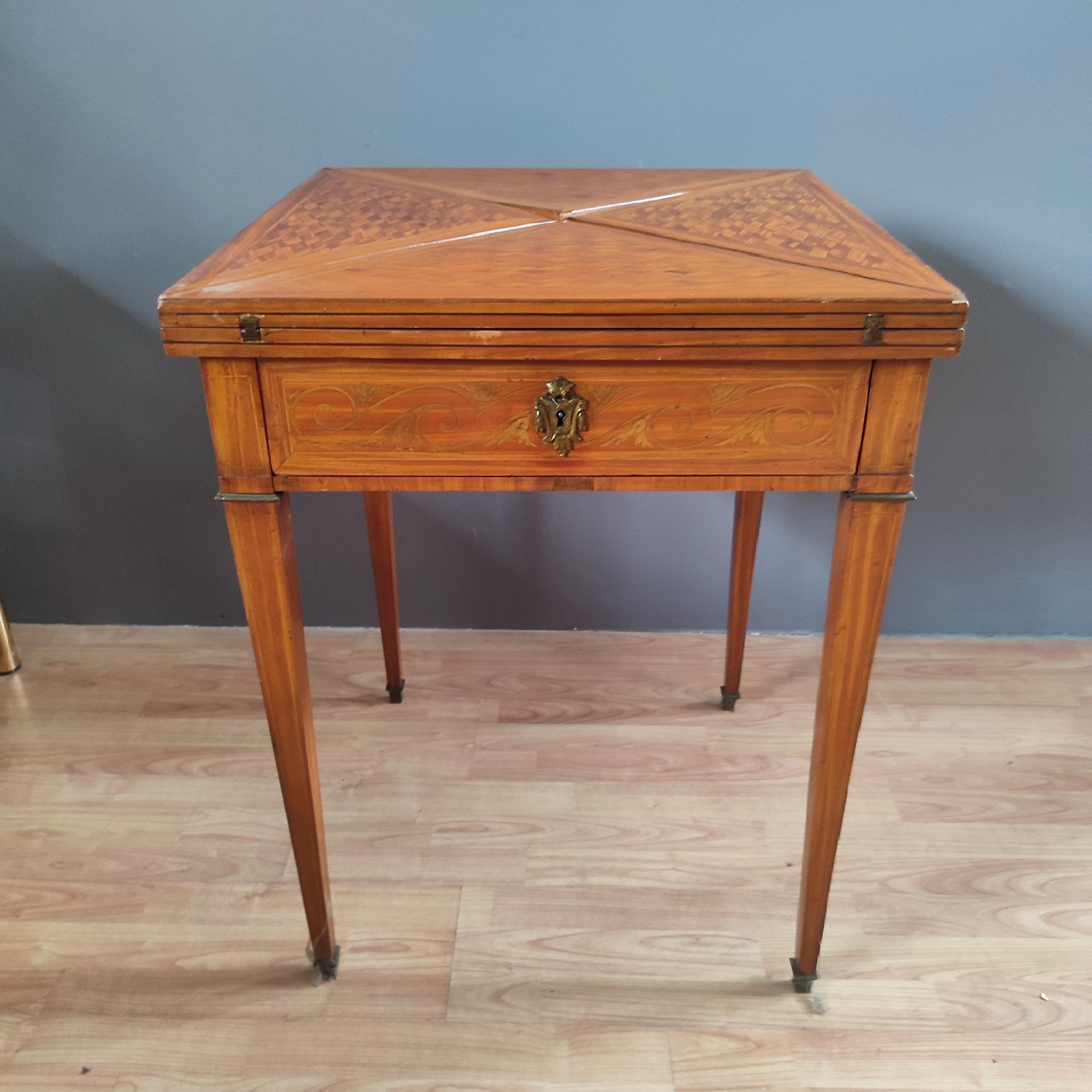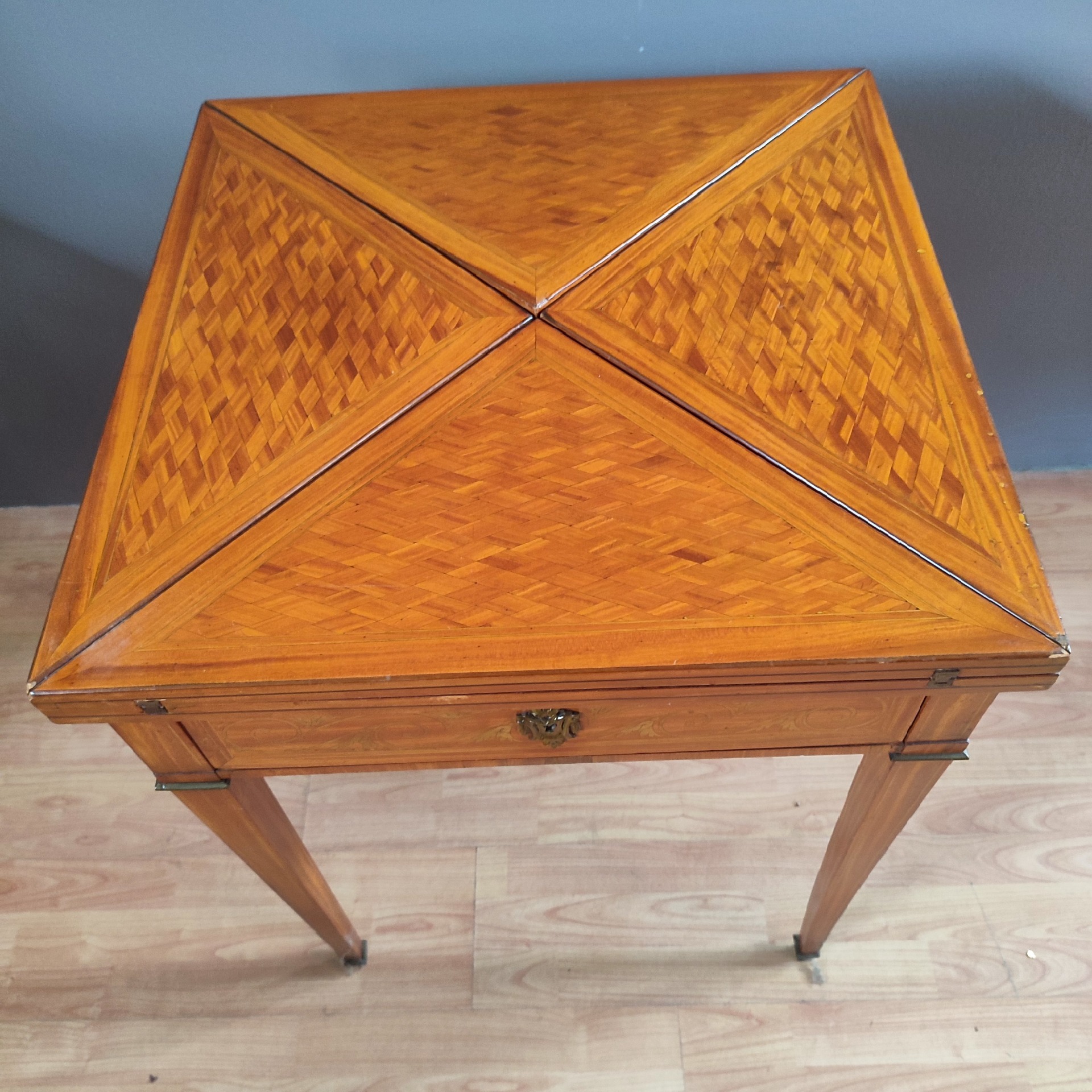 Tavolino da gioco Napoleone IIIIntarsiato con varie essenze. Mis: 60x60 H79 Usure restauri dovuti all'epoca. Siamo a vostra disposizione per foto o domande.