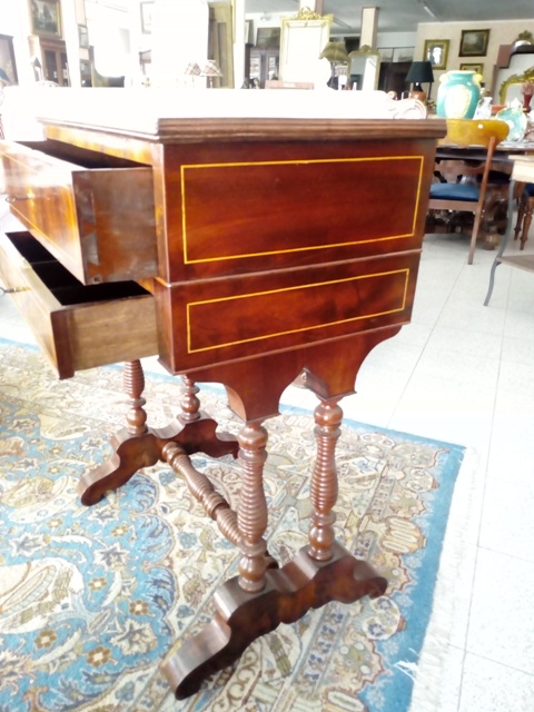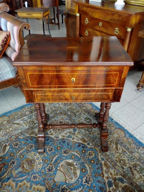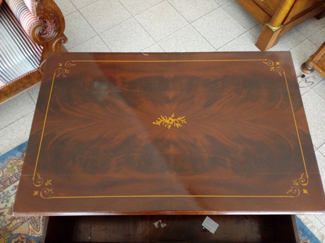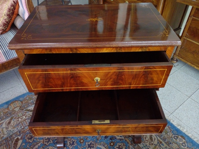 in mogano, con intarsi restaurato.Dimensioni: L. 65 cm, H. 90 cm, P. 40 cm.
