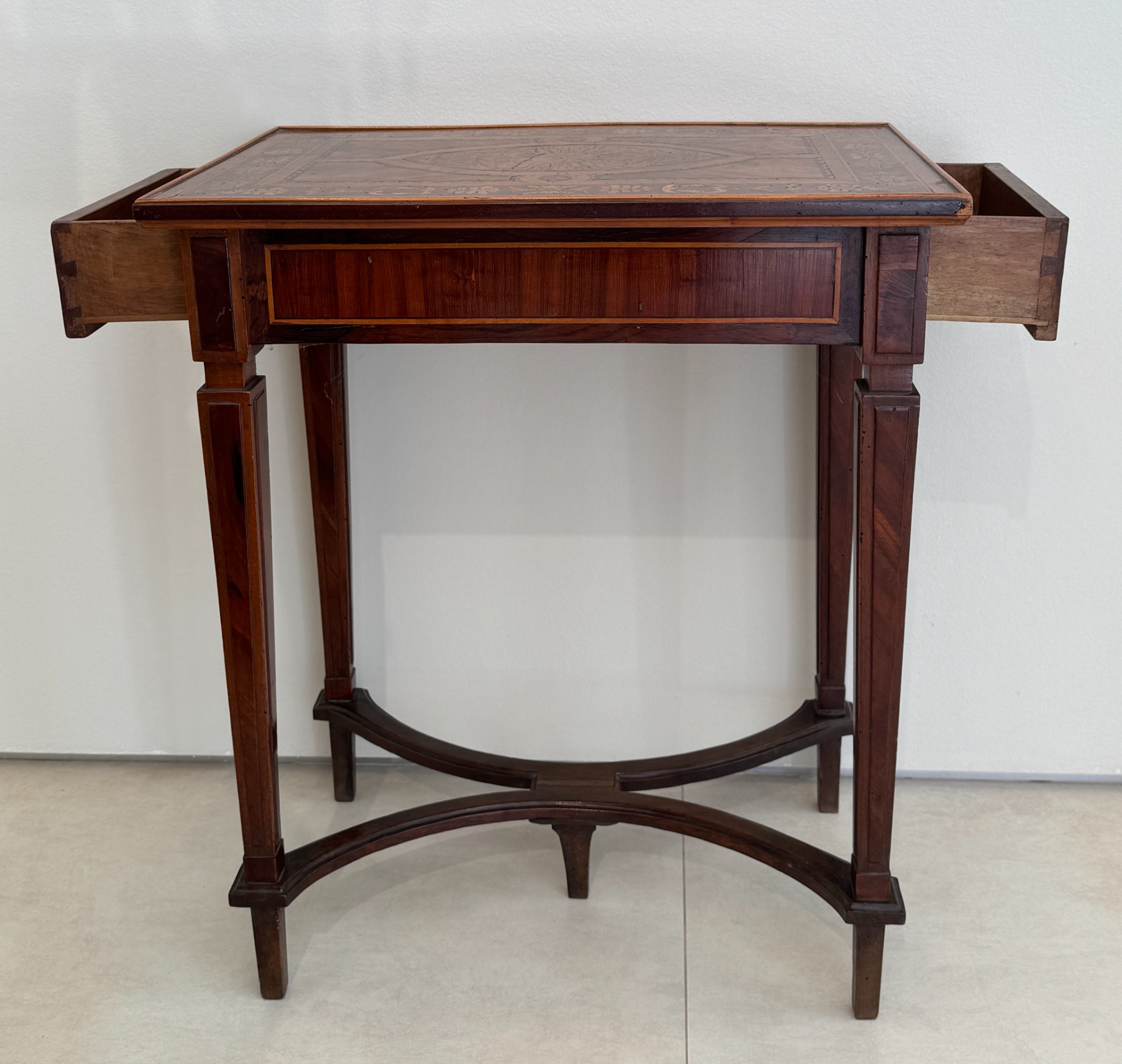 Tavolino intarsiato in noce e legni diversi, Lombardia, fine XVIII secolo