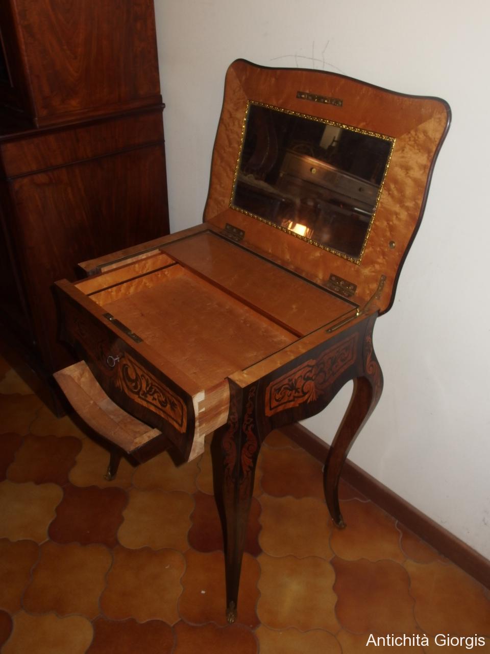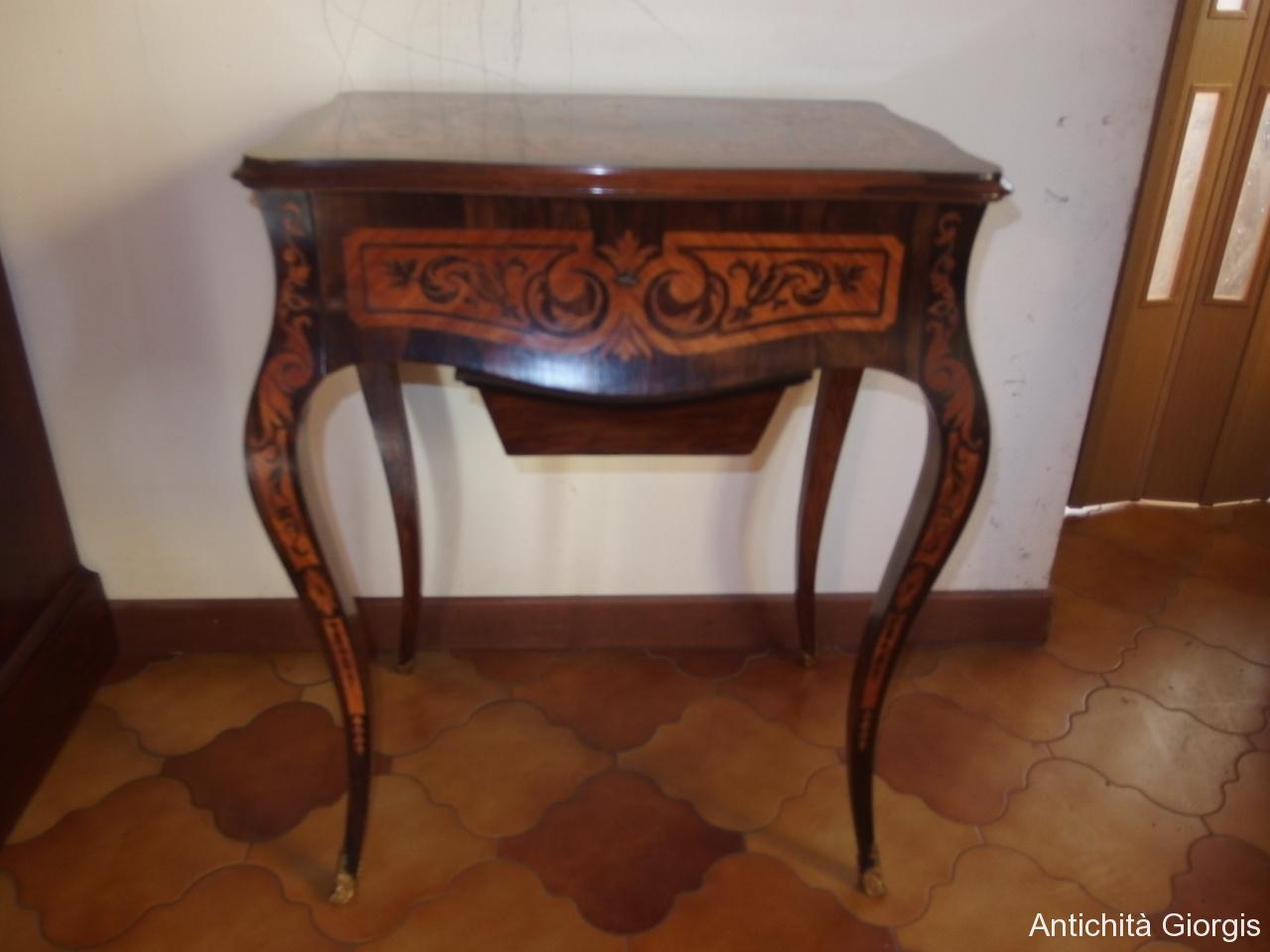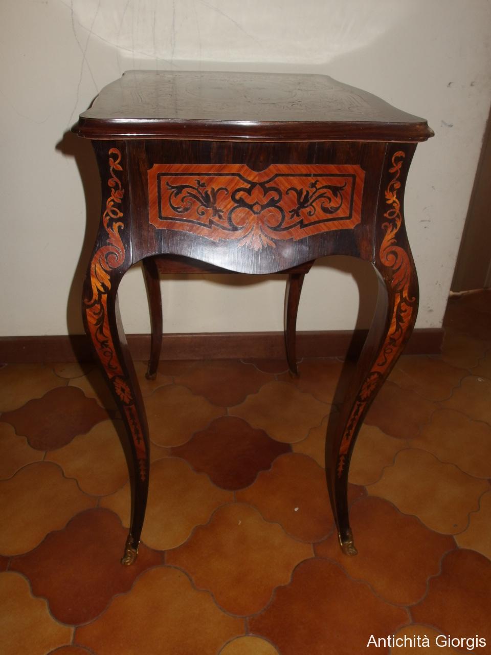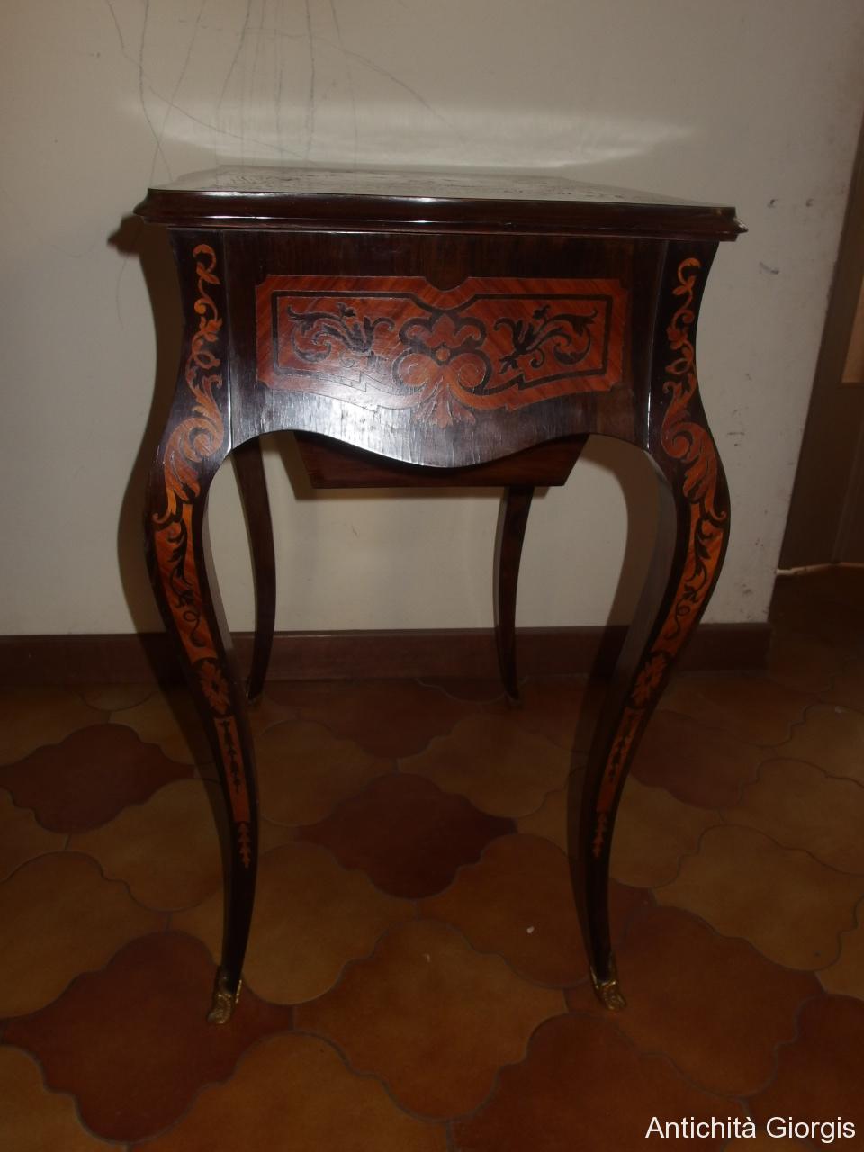 Bellissimo tavolino da lavoro intarsiato in palissandro e legno di rose di stile Napoleone III epoca seconda metà 800 di provenienza francese.Il tavolino è completamente originale NON NECESSITA DI RESTAURO,"VEDI FOTO",il restauro è stato eseguito da noi la lucidatura