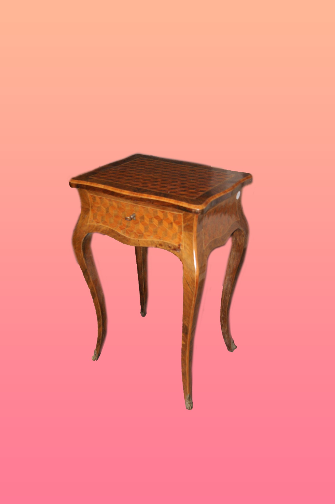 Mobiletto toilette francese del 1800 stile Luigi XV in noce intarsiato marquetterie
