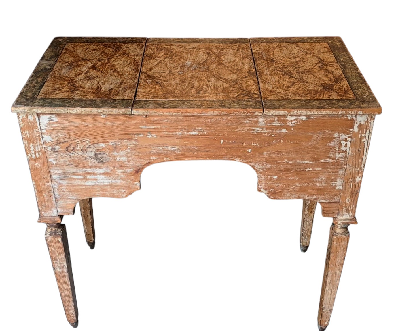 Tipologia: Toilette (mobile da trucco o 'coiffeuse') con piano apribile e specchio a scomparsa.