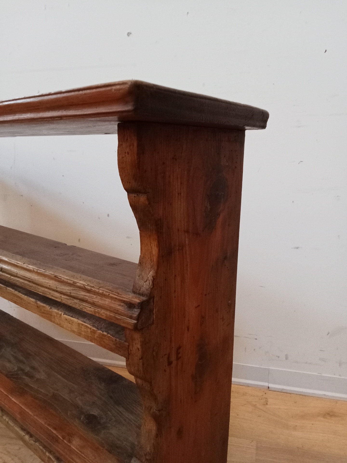 PICCOLA PIATTAIA IN ABETE DA APPOGGIO/MURO DOTATA DI DUE RIPIANI E DI FIANCHI SAGOMATI. NONOSTANTE SI TRATTI DI UN MOBILE DA APPOGGIO, O A TERRA O SU UN MOBILE, GRAZIE AI DUE OCCHIELLI, E' POSSIBILE ANCHE APPENDERLA. CONDIZIONI GENERALI BUONE. EPOCA FINE '800 . PER ULTERIORI FOTO CONTATTATEMI. MISURE: 92 CM X 23 CM, ALTEZZA 73 CM. SPESE DI SPEDIZIONE: 60,00 EURO. PER SPEDIZIONE ISOLE SUPPLEMENTO DI 20 EURO.