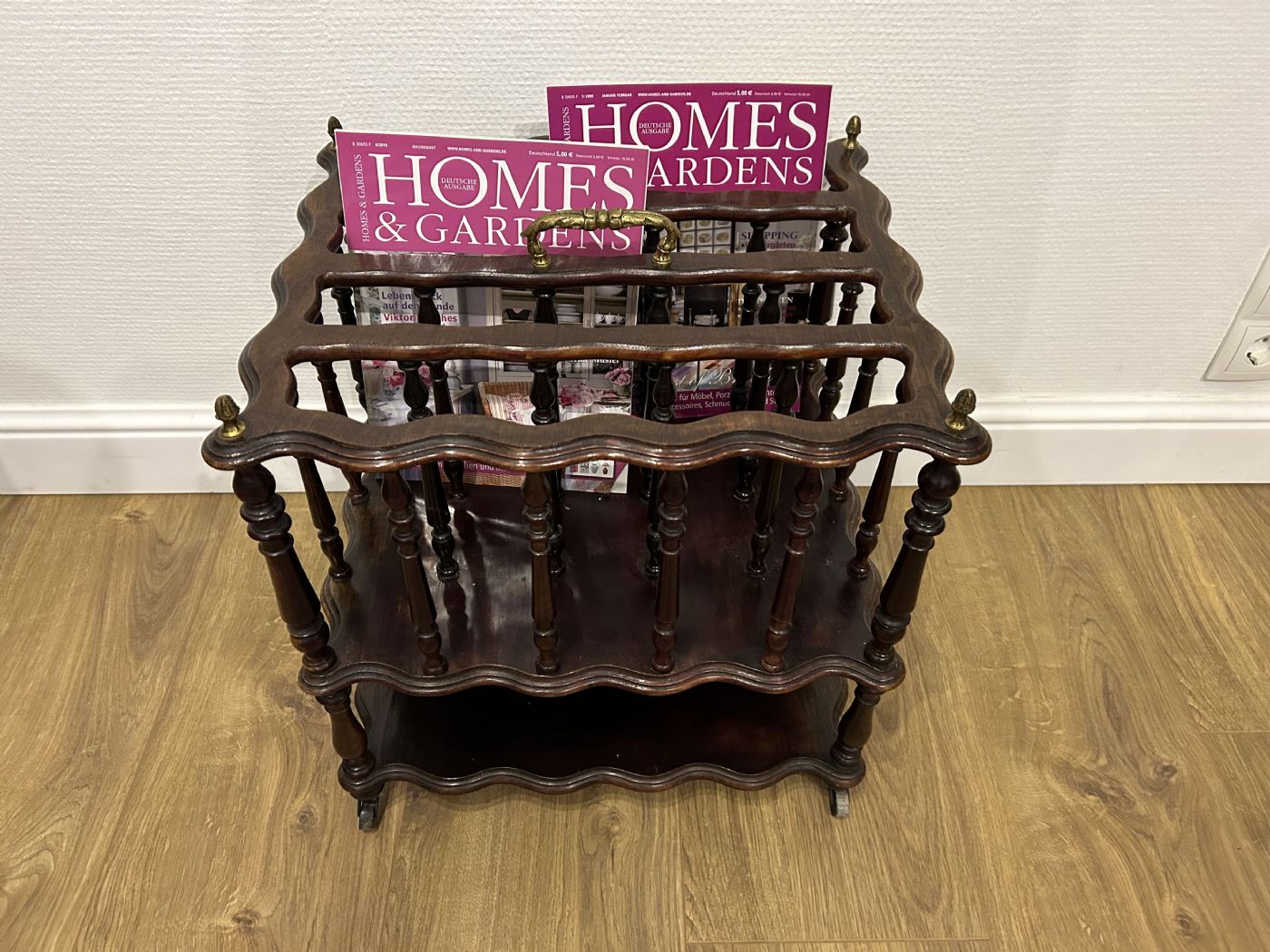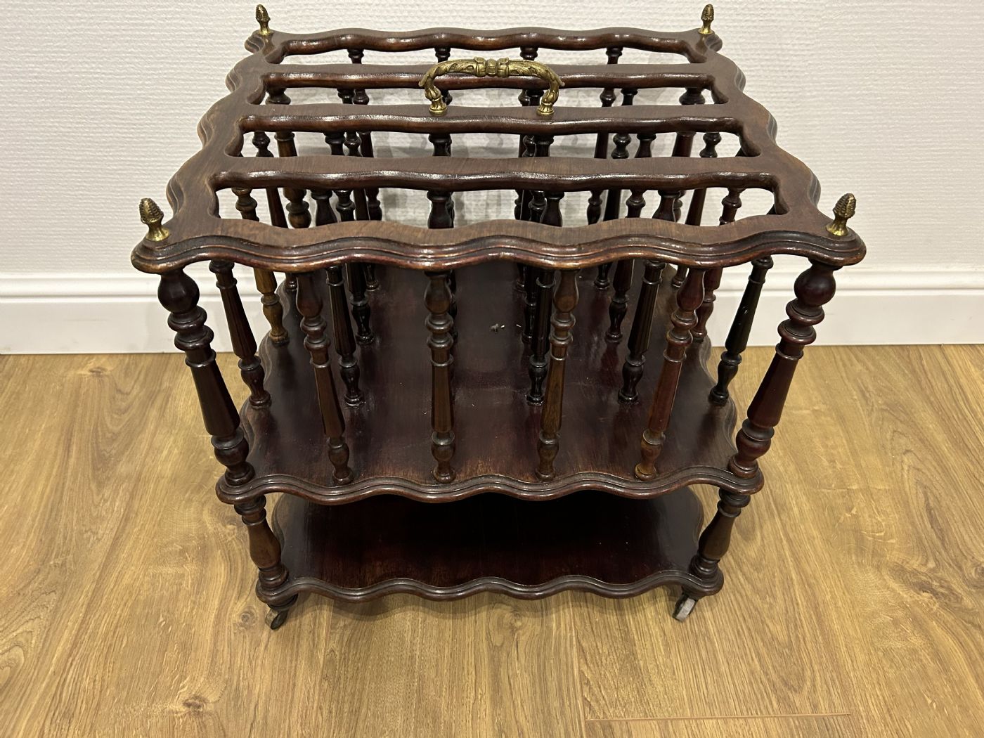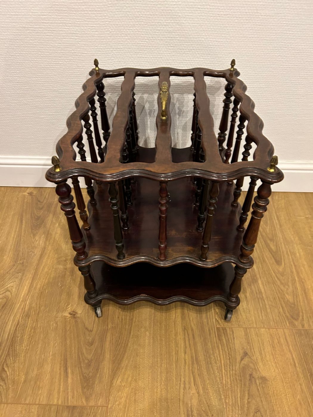 Una rarissima portra reviste di Noce con pigne di ottone d'orato, misure: larghezza 44cm, profondità 38cm è altezza 47cm, Luigi Philippo, Francia prima metà dell'Ottocento; A very rare Canterburry in walnut with gilded brass cones, measuremets: width 44cm, deoth 38cm and hight 47cm, Louis Philippe, France 1st half of the 19th century;