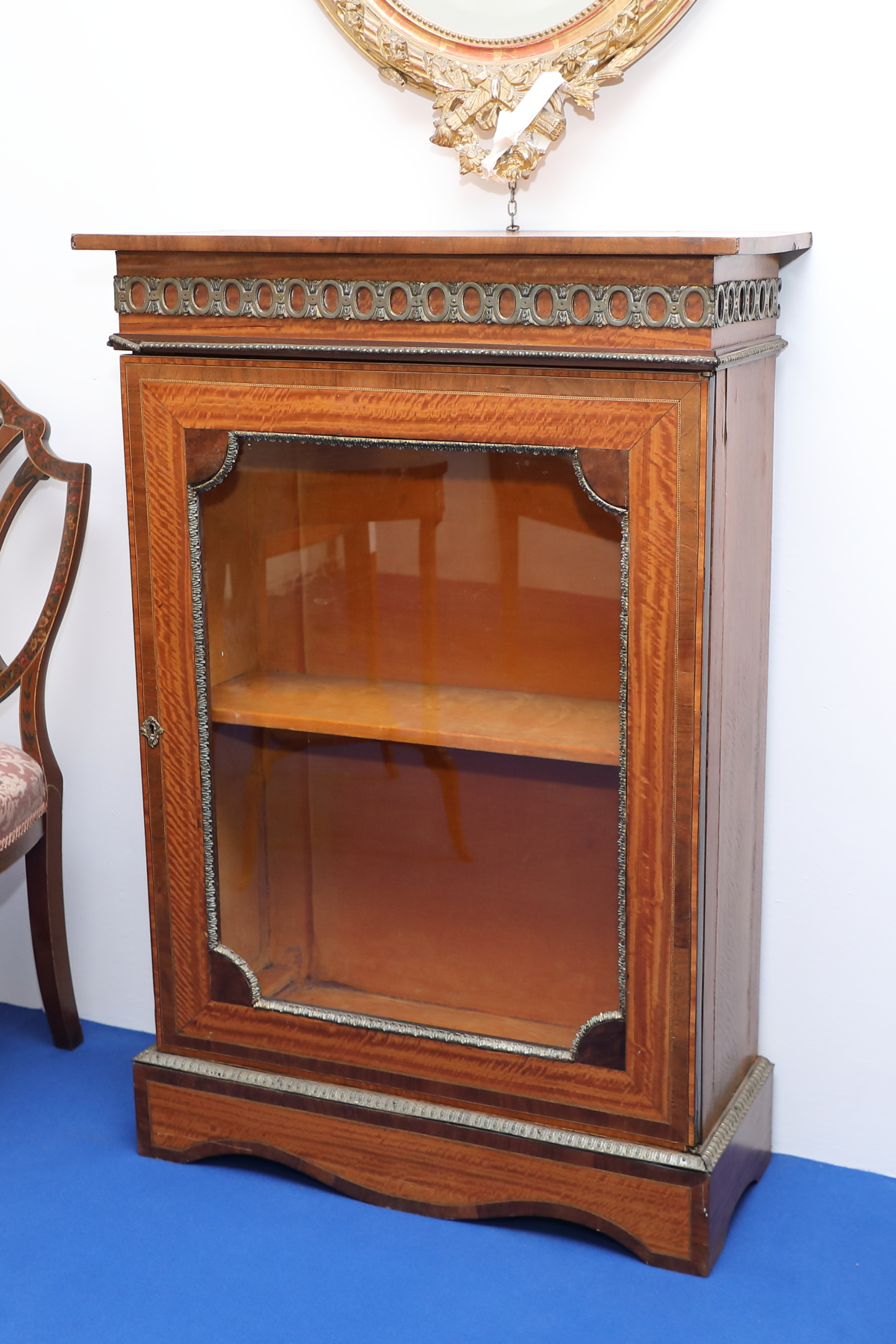 Vetrina ad un'anta in satinwood con bronzi dorati di ornament0