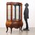Vetrina in stile barocchetto lombardo, completamente bombata in ogni direzione, intagliata a piccoli motivi sui profili, impiallacciata ion radica di noce nelle riserve, vetri sui fianchi e anta bombati.
