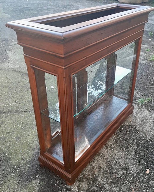 Particolarissima vetrina da centro con fioriera nella parte superiore. Misura: cm. 97 x 33 x 93