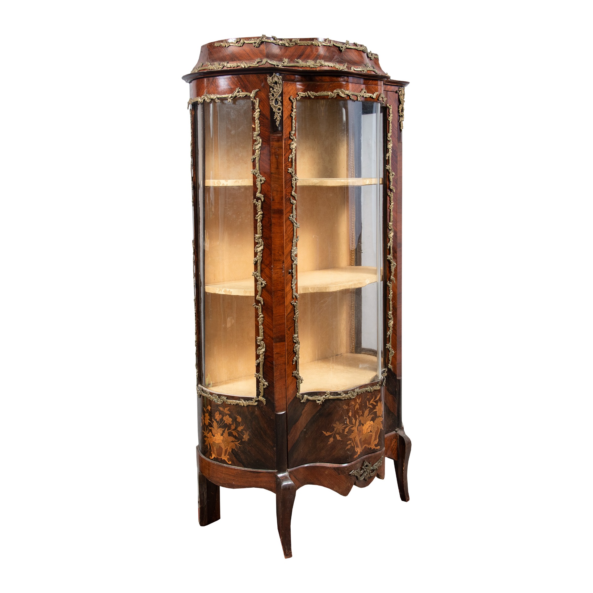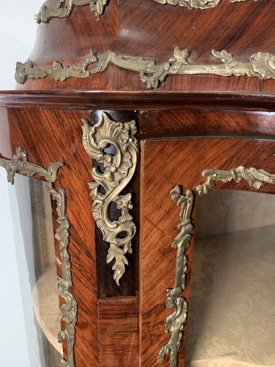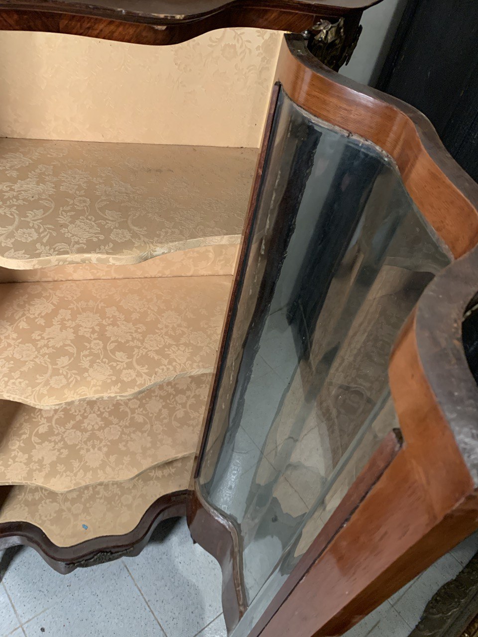 Vetrina impiallacciata in legni vari. Francia, fine XIX secolo.