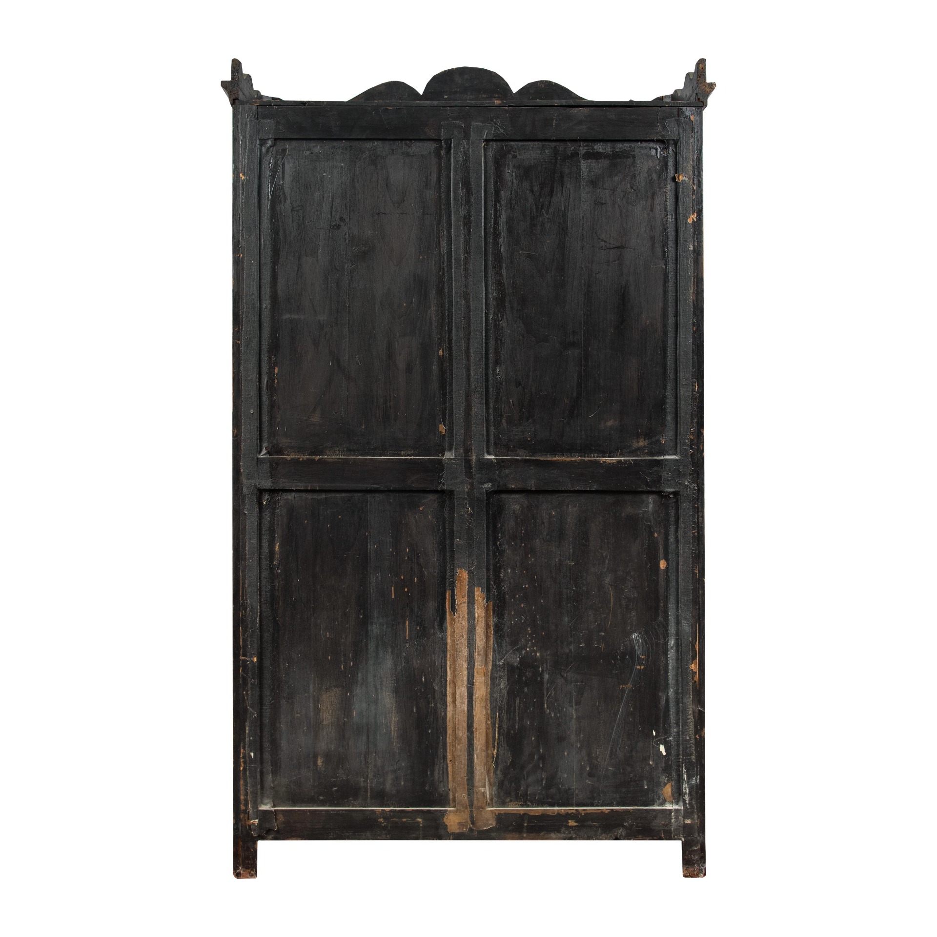 Realizzata con forma architettonica, interamente impiallacciata in legni vari con applicazioni in bronzo dorato (piccole rotture e mancanze, rottura di un vetro).