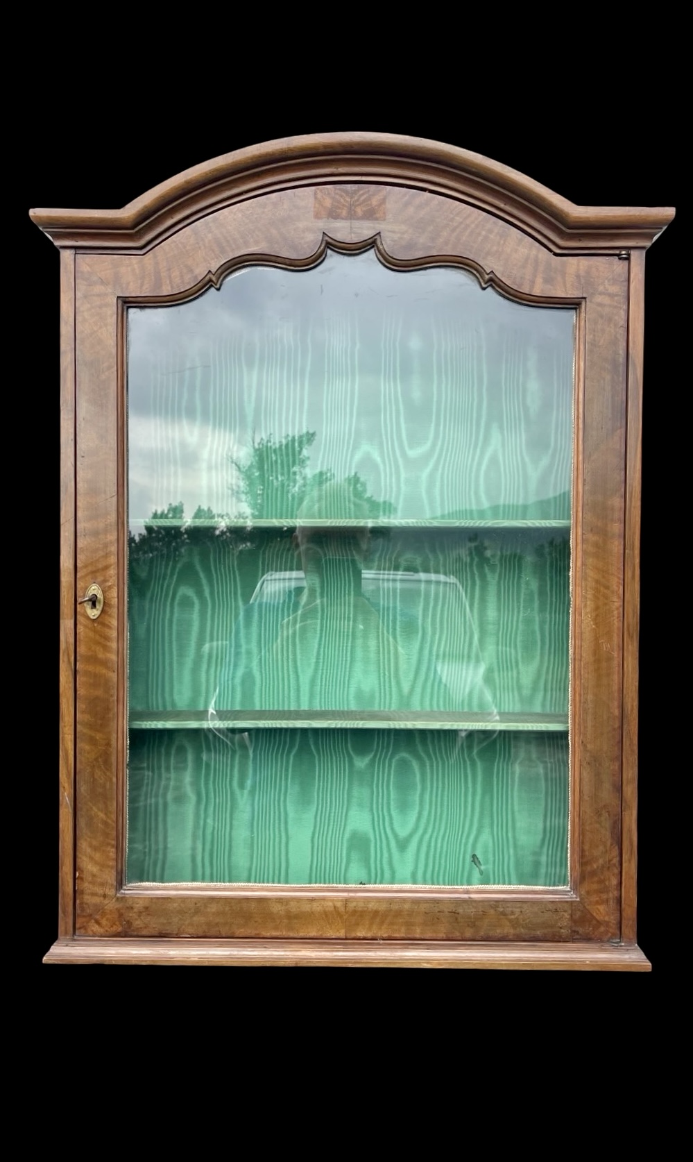 Vetrinetta da collezionismo in noce a tre ripiani da appoggio o da appendere.Cm 82x64. Ripiano base:cm 53x10. Due ripiani superiori:cm 53x9. Distanza ripiani:cm 20x20x33.