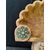 Bellissima acquasantiera in marmo giallo reale con intarsi in marmo verde alpi.