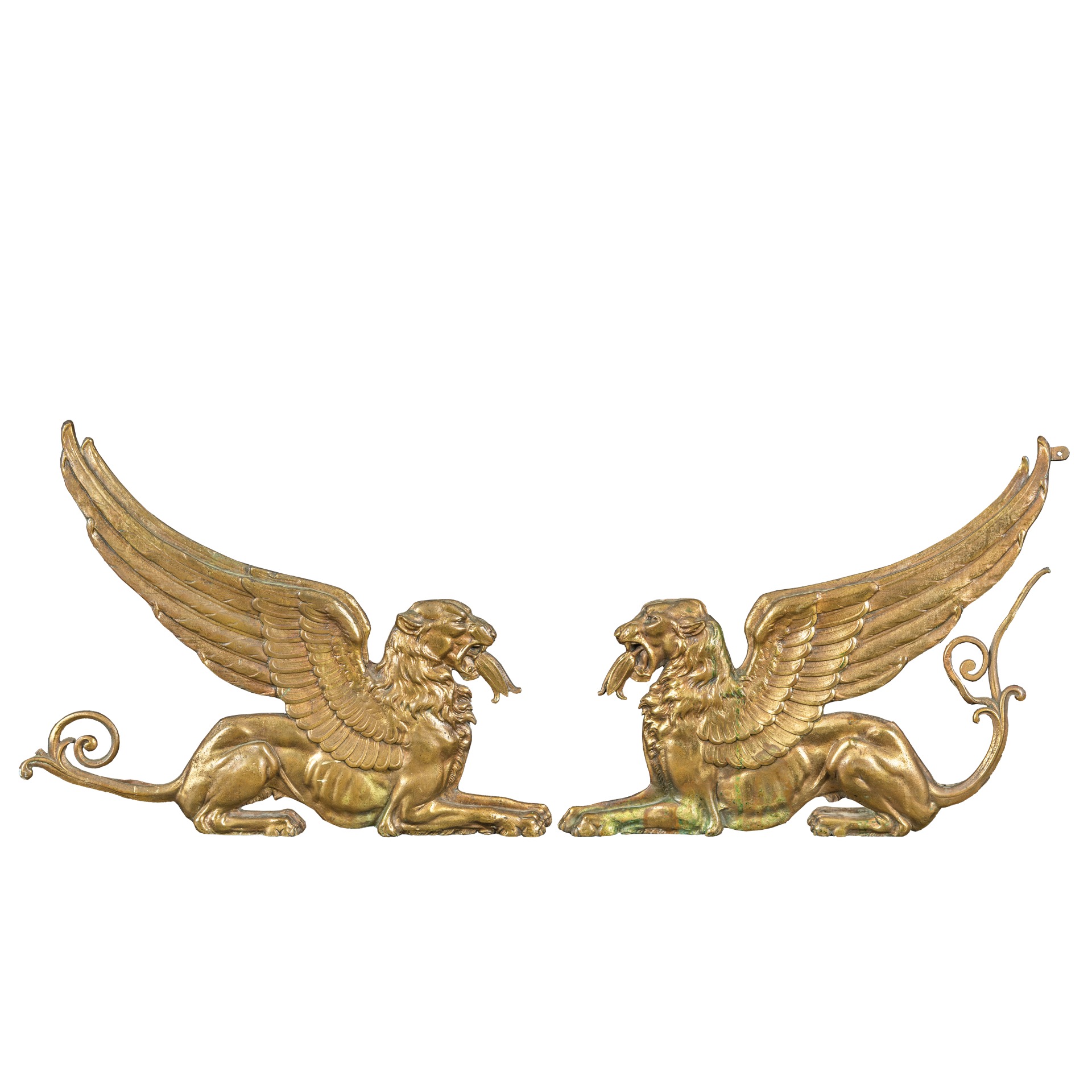 Realizzati interamente in bronzo finemente cesellato e dorato. Raffiguranti una coppia di leoni alati di gusto Impero.