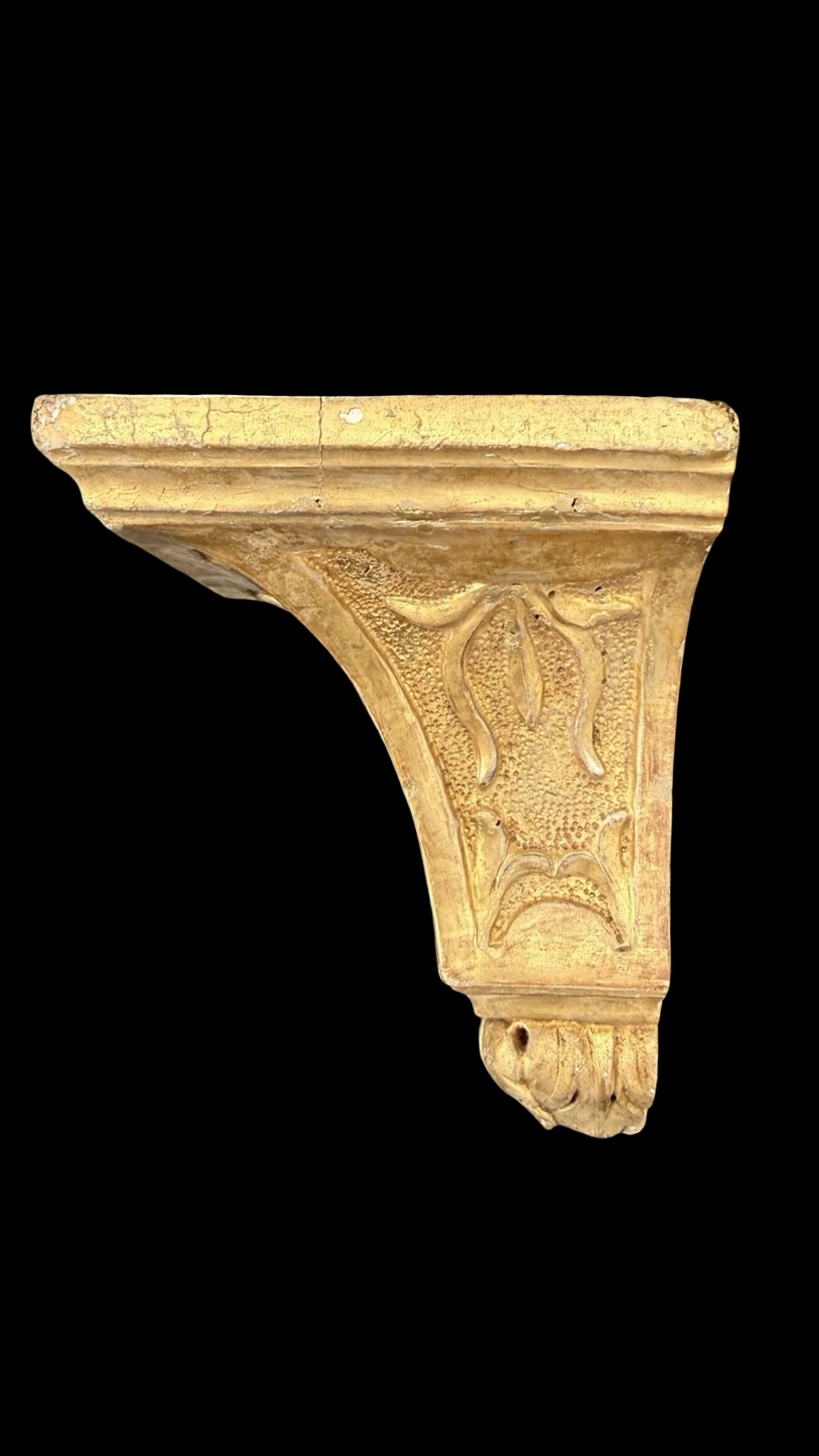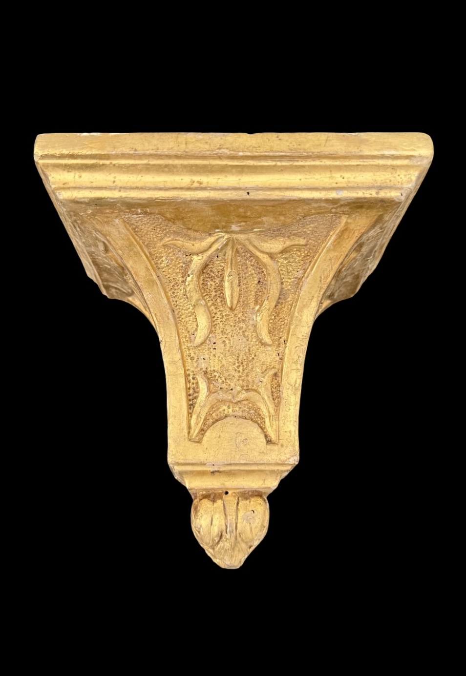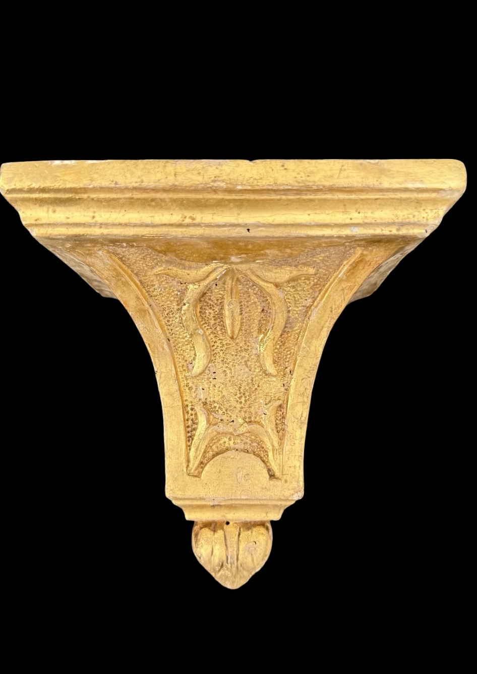 Mensolina applique in legno intagliato e foglia oro con decoro a motivi vegetali stilizzati. Periodo Impero.Cm 14x1.H:cm 14.