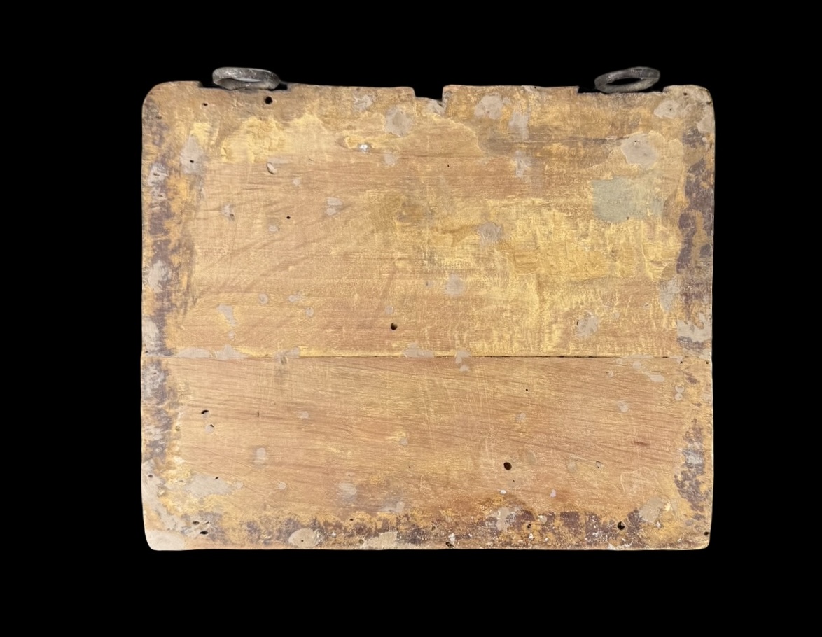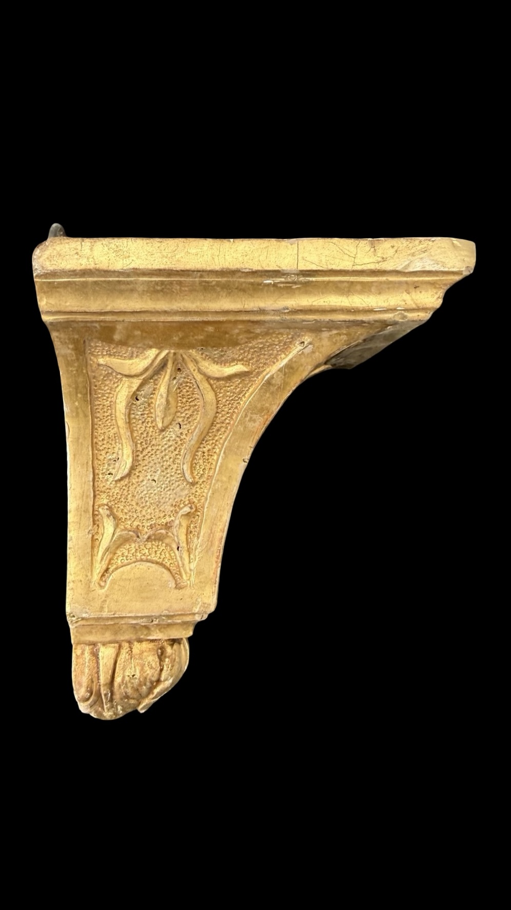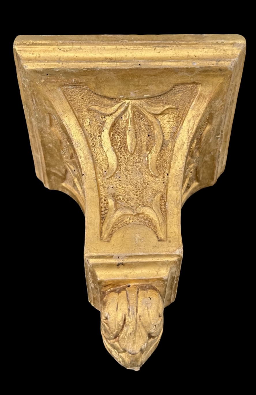 Mensolina applique in legno intagliato e foglia oro con decoro a motivi vegetali stilizzati. Periodo Impero.Cm 14x1.H:cm 14.