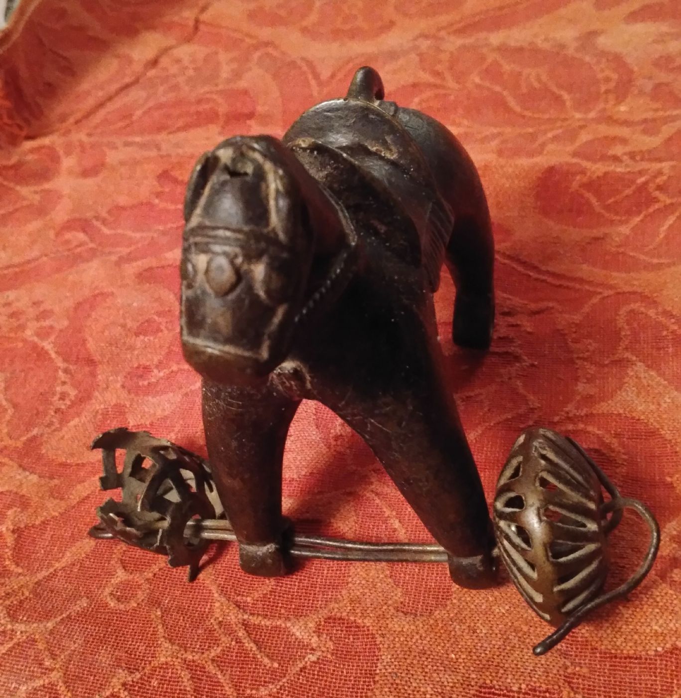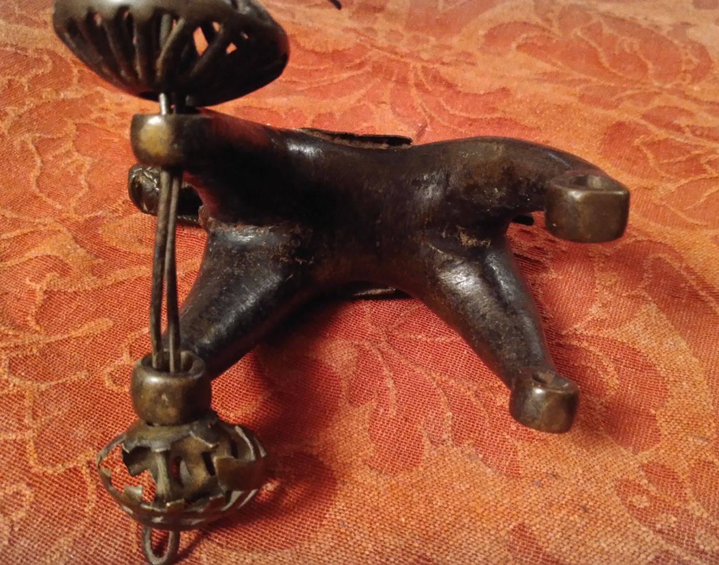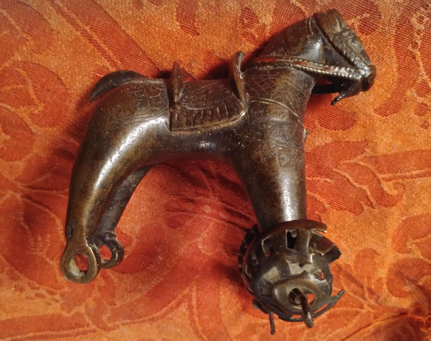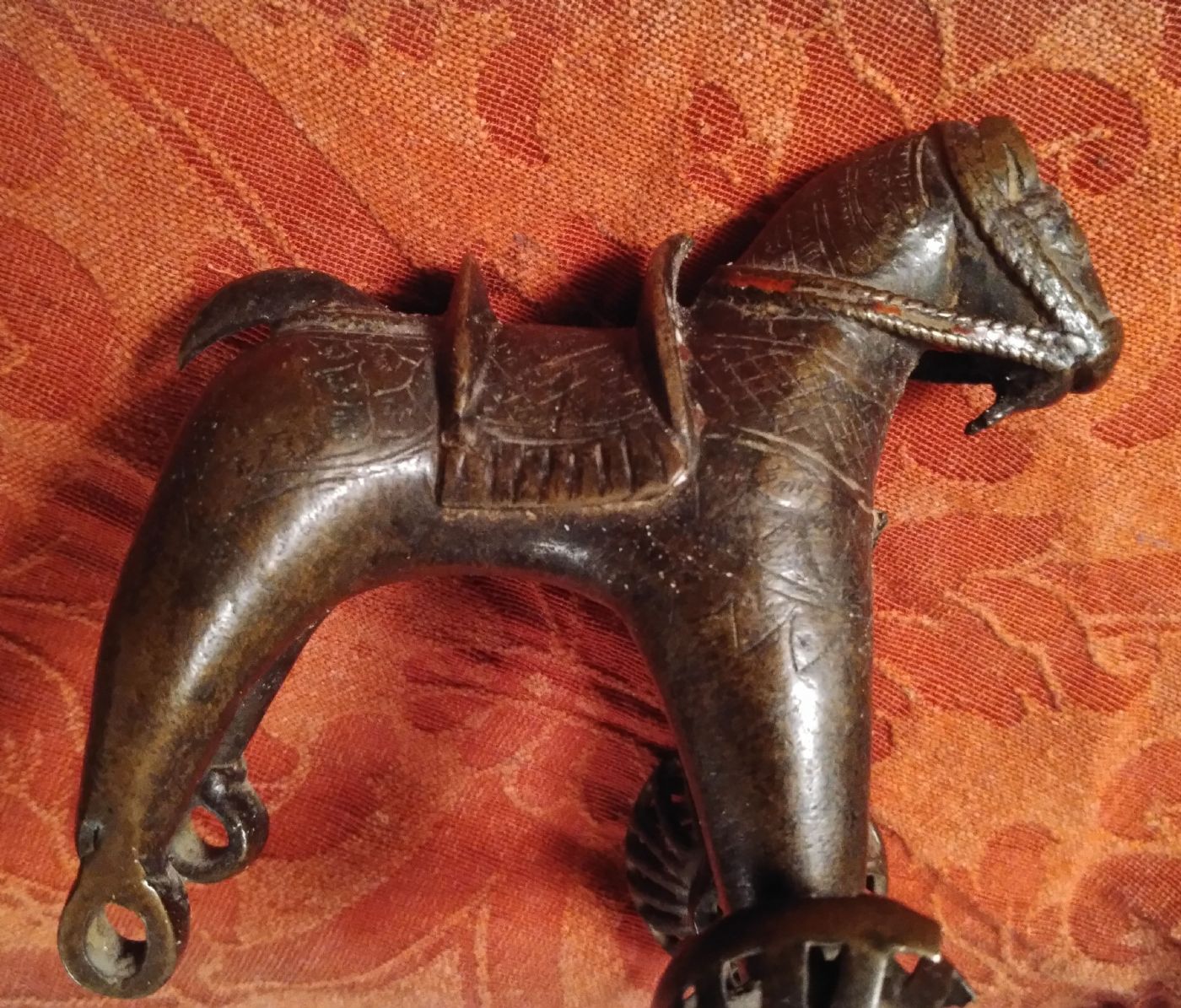 Antico giocattolo indiano in bronzo a forma di cavallo