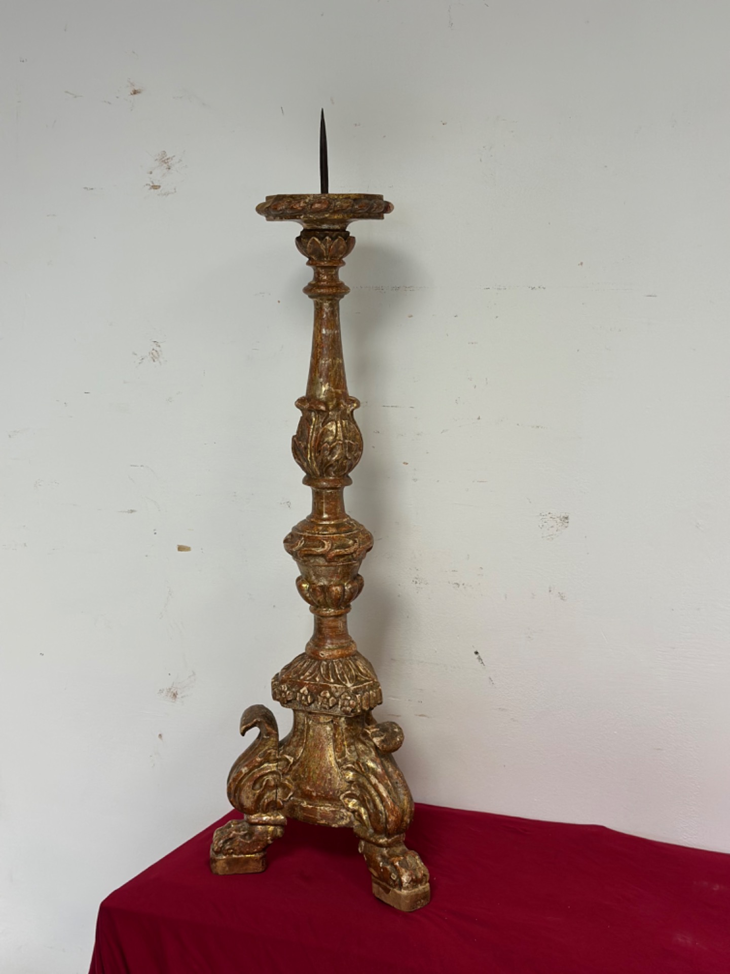 Candeliere in legno intagliato e dorato a mecca epoca prima metà del’700 di area lombarda