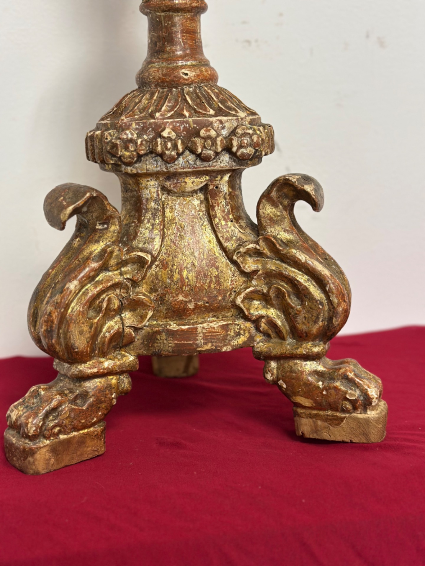 Candeliere in legno intagliato e dorato a mecca epoca prima metà del’700 di area lombarda