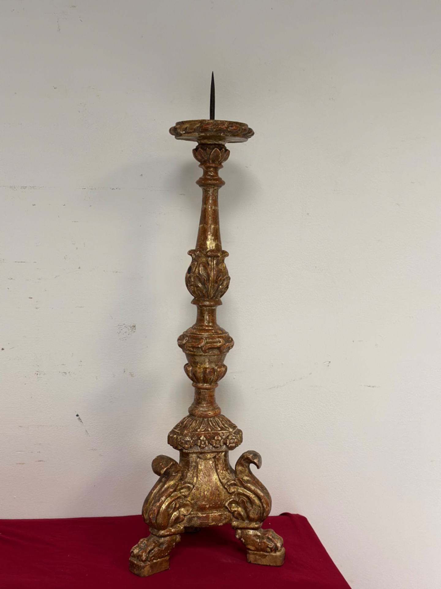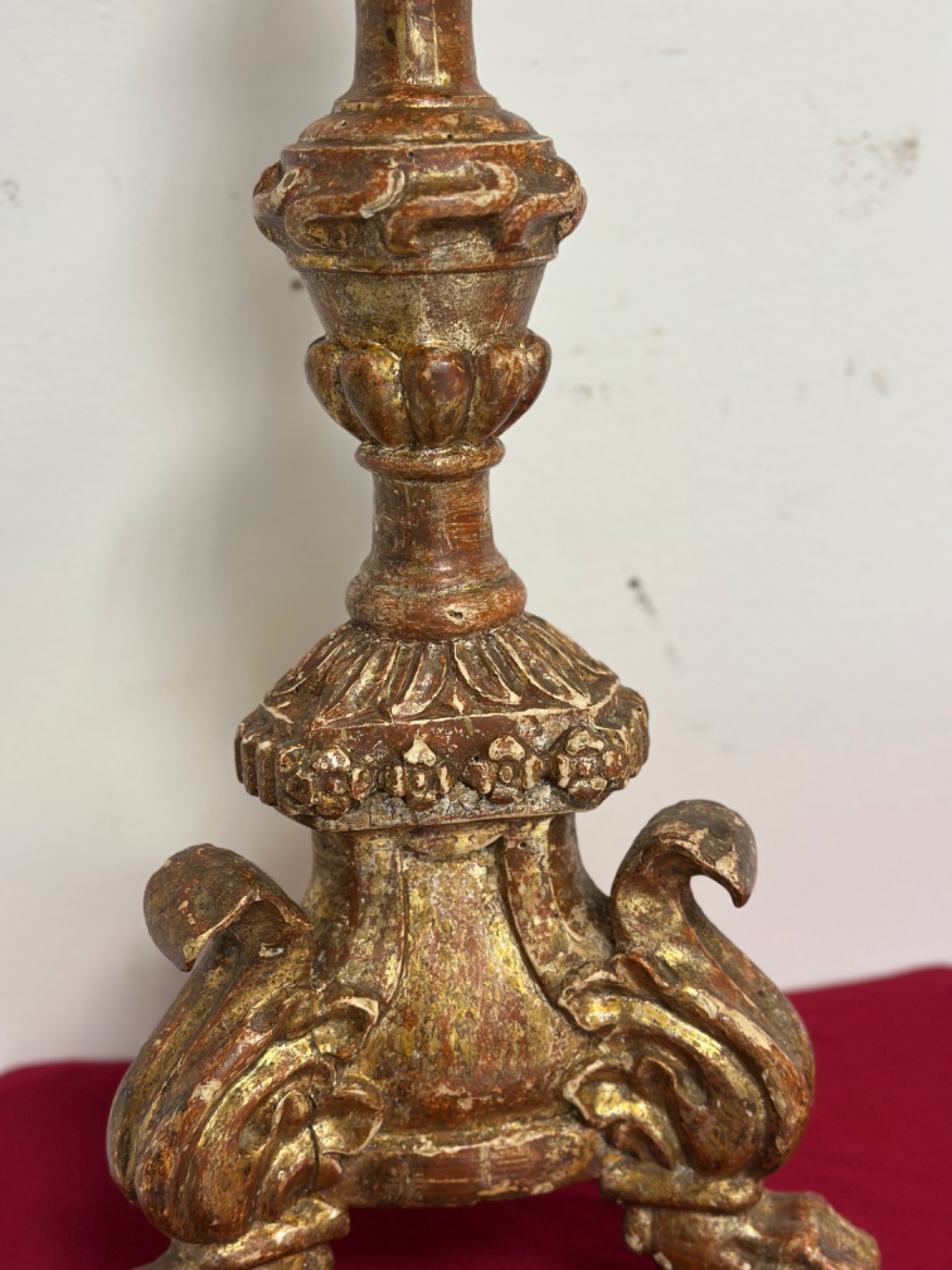 Candeliere in legno intagliato e dorato a mecca epoca prima metà del’700 di area lombarda