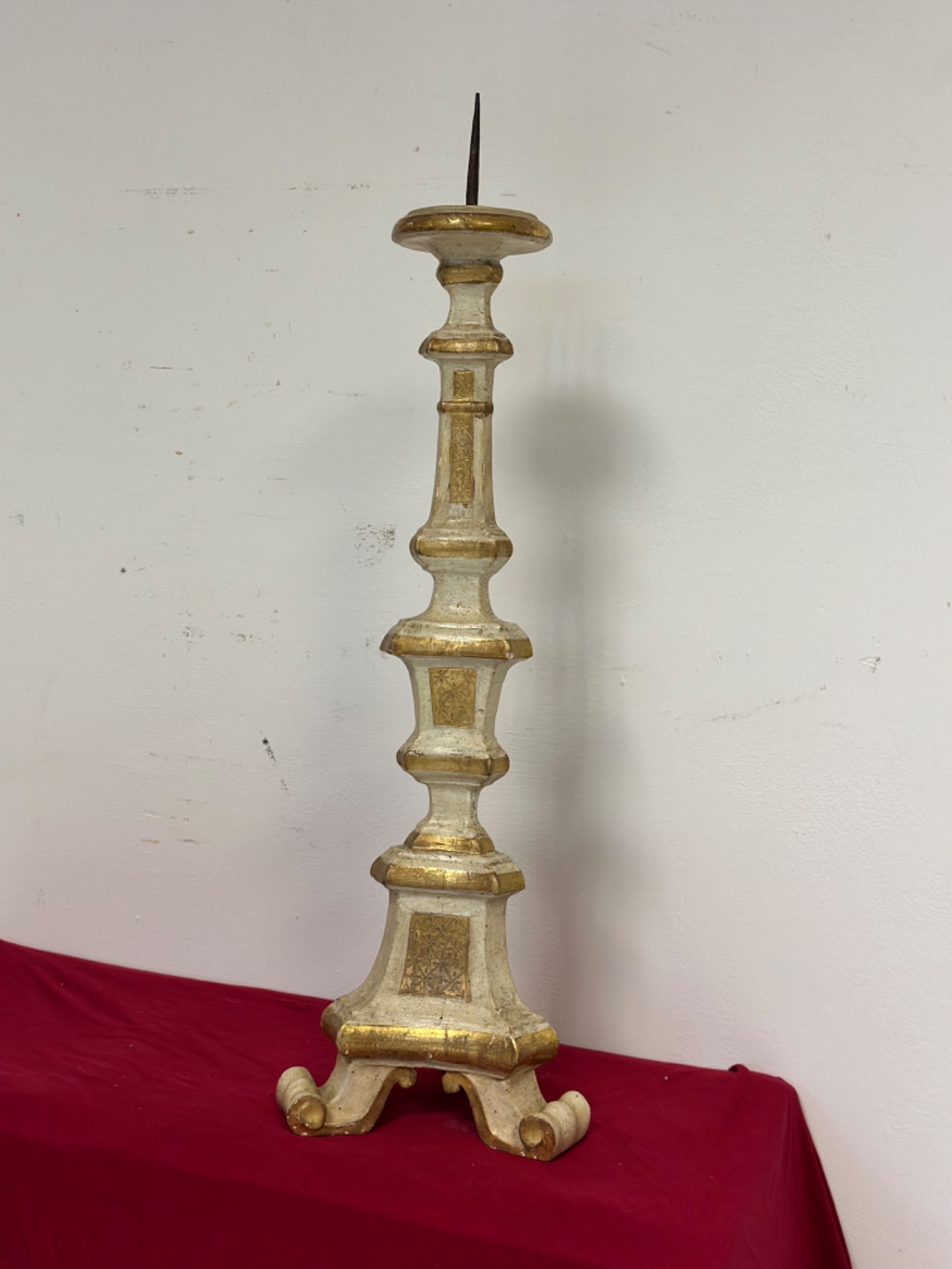Candeliere Luigi XV in legno intagliato e dorato epoca prima metà del’ 700 di area Emilia Toscana
