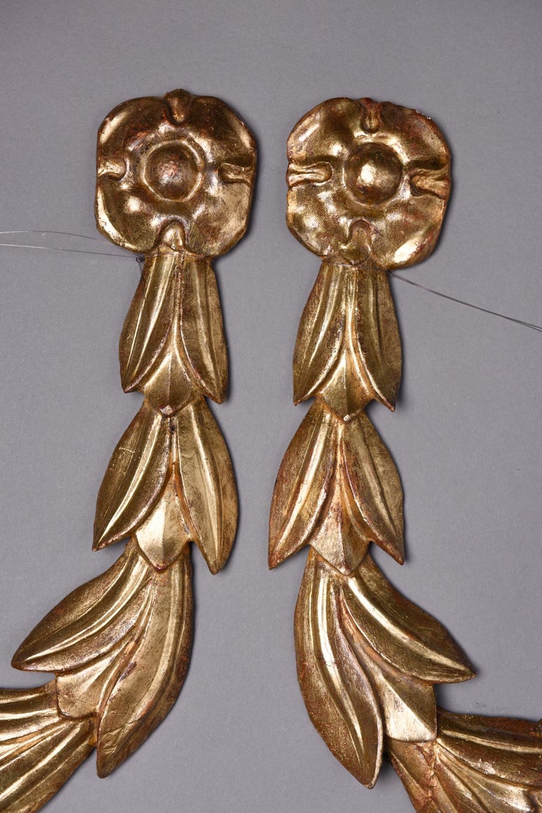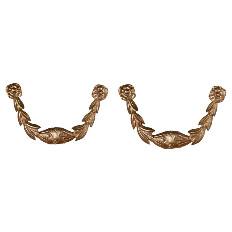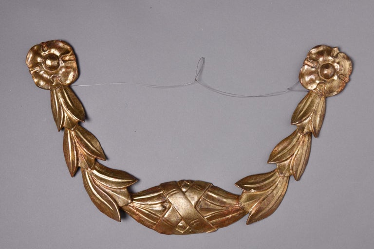 Coppia di antiche ghirlande in legno dorato provenienti da Firenze in stile Luigi XVI. Possono ornare specchi, mensole, appliques: molto eleganti.