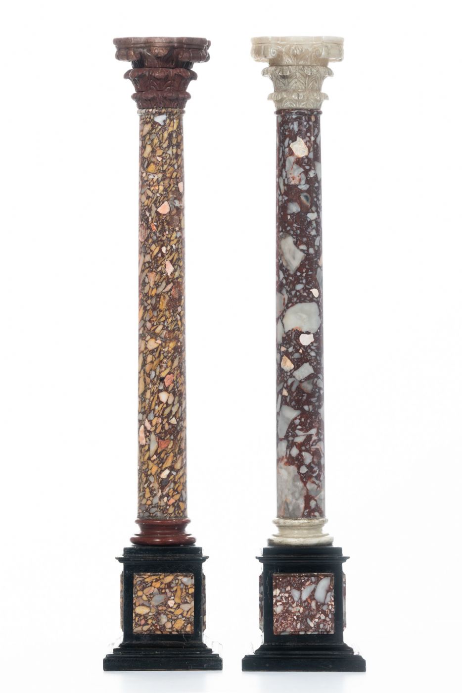 Coppia di colonne , in varimarmi marmi pregiati ,breccia antica , alabasto, marmo rosso antico