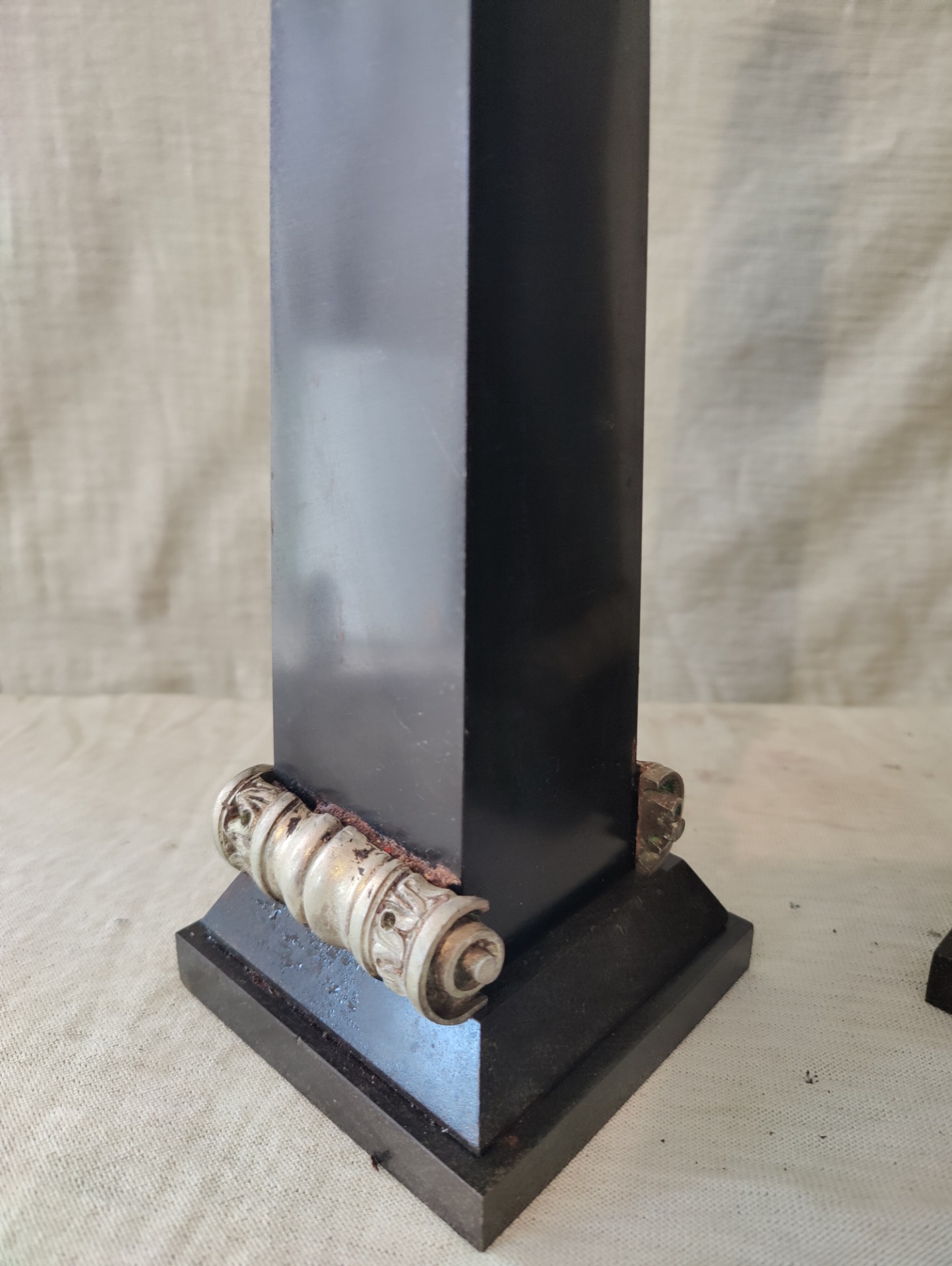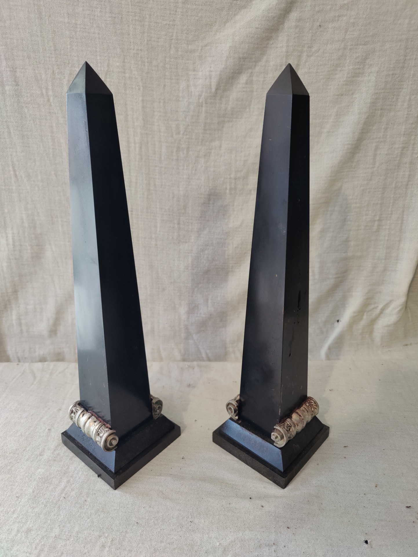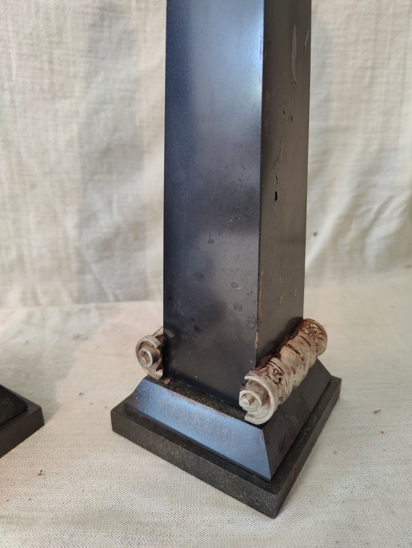 Piccola coppia di obelischi in marmo nero del Belgio - H 46 cm
