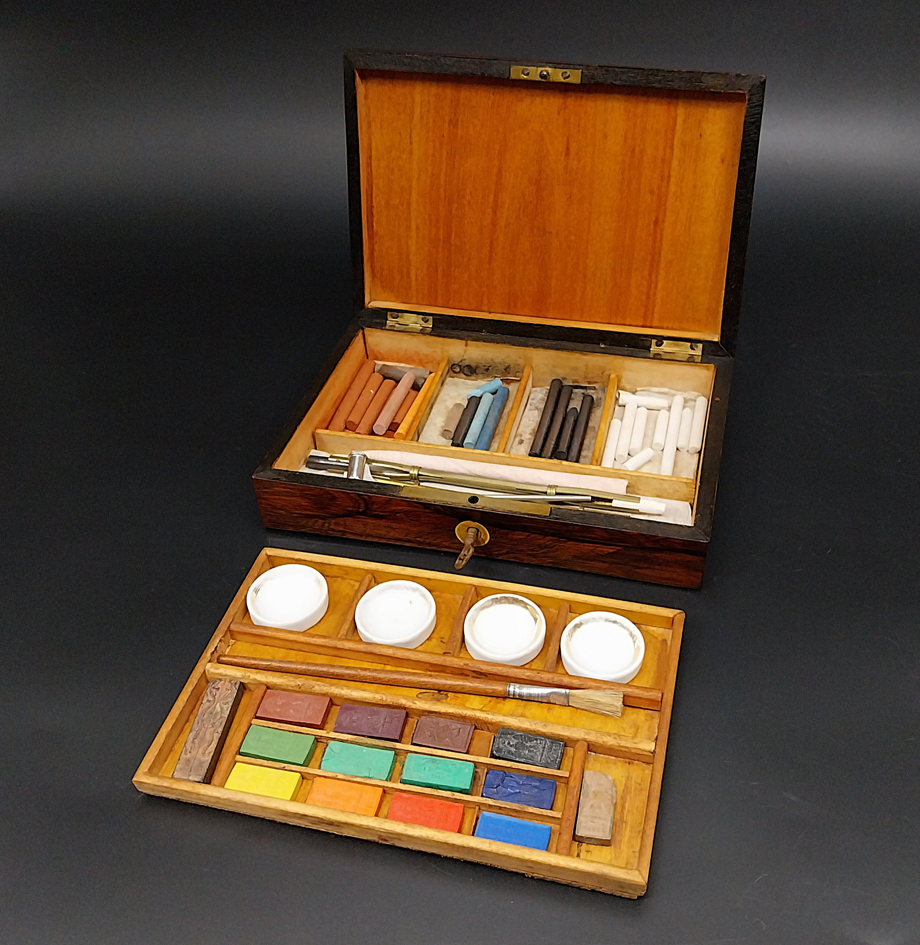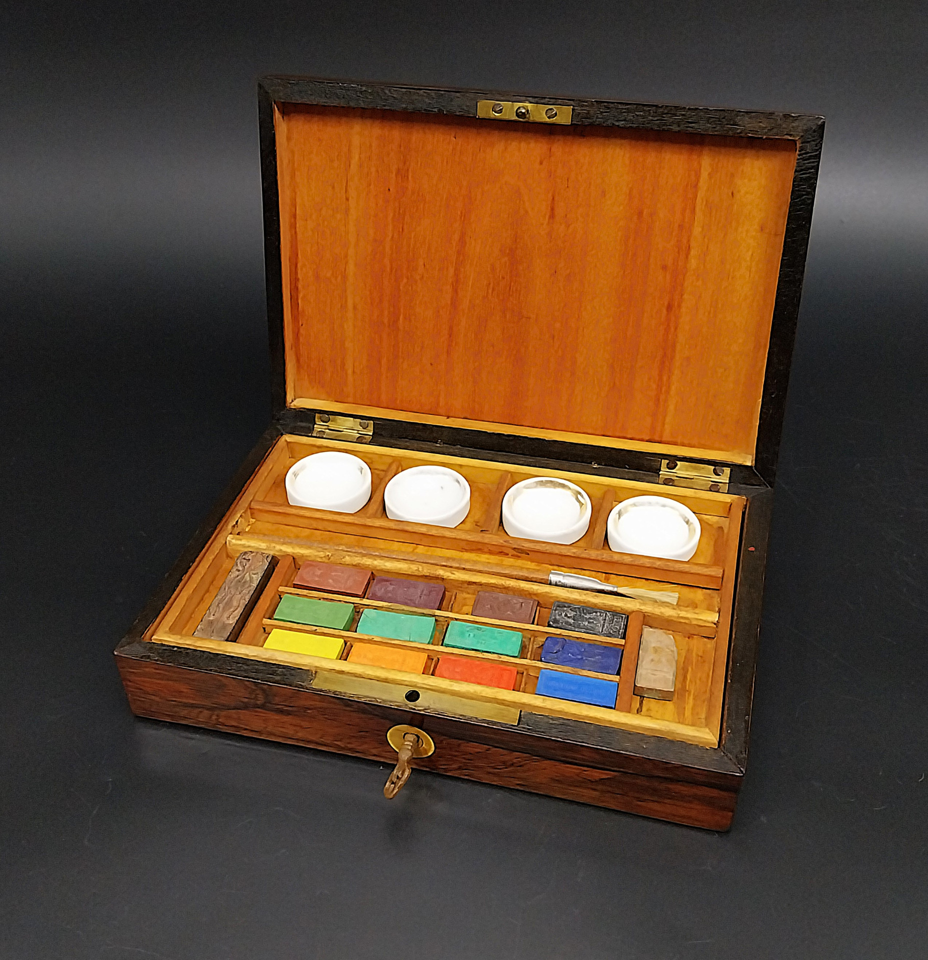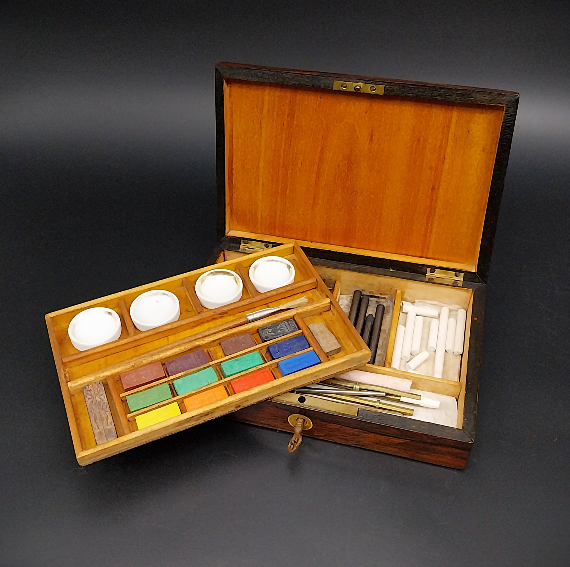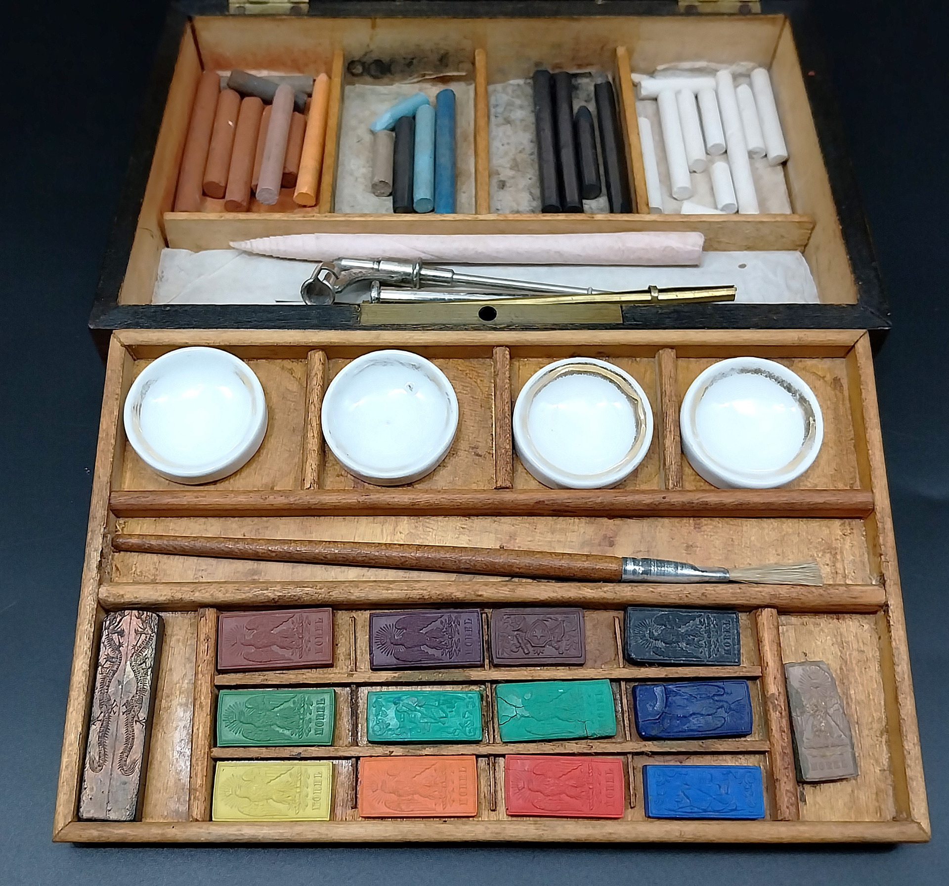 Rara scatola da pittore con colori ad acquerello, epoca Napoleone III.fine del XIX secolo.