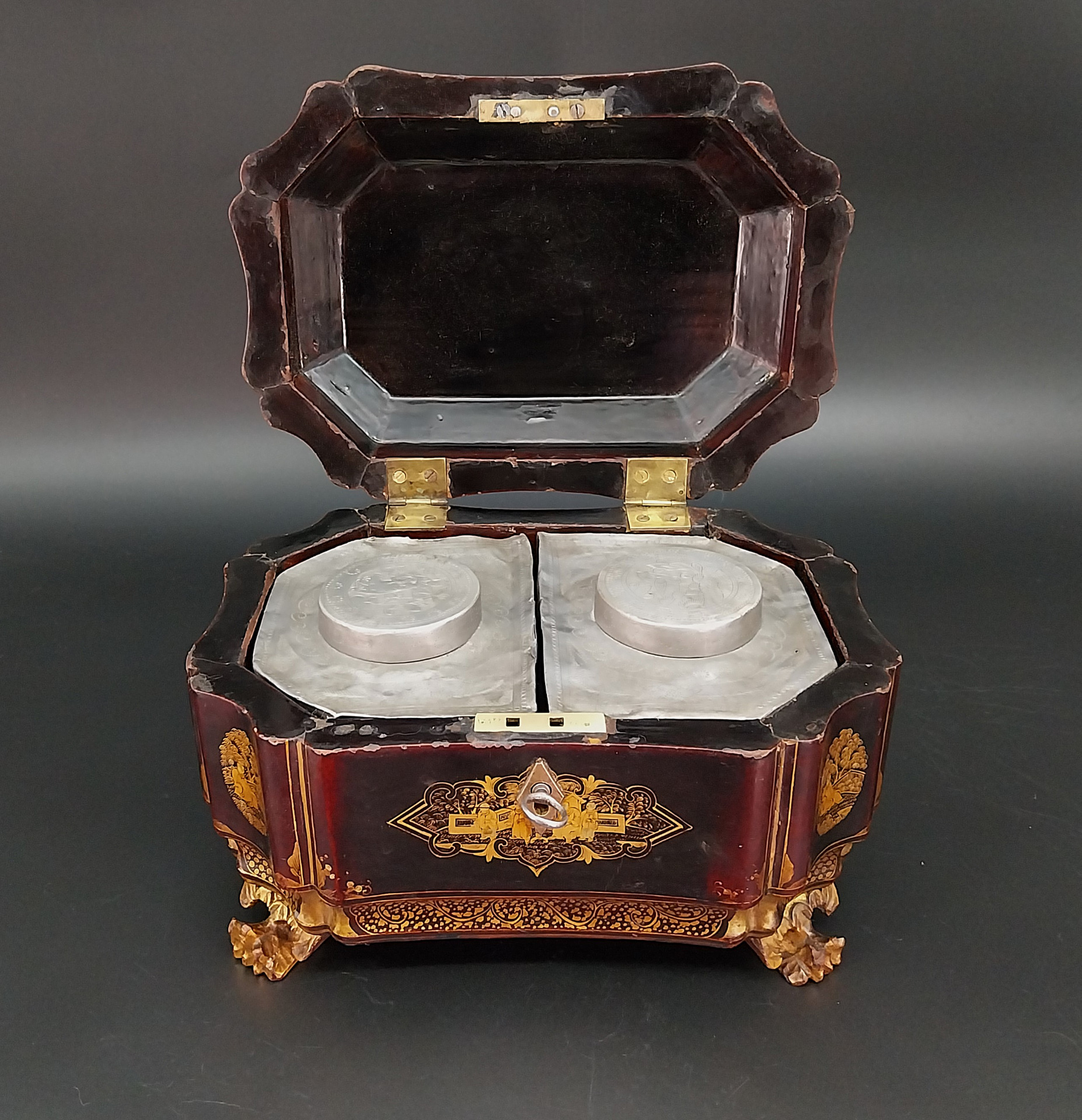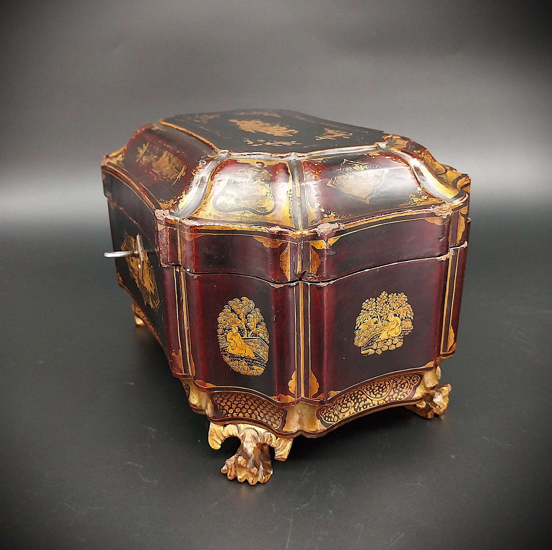 Scatola da tè laccata e decorata.Fine XIX secolo.