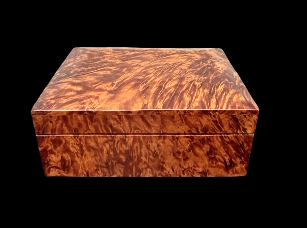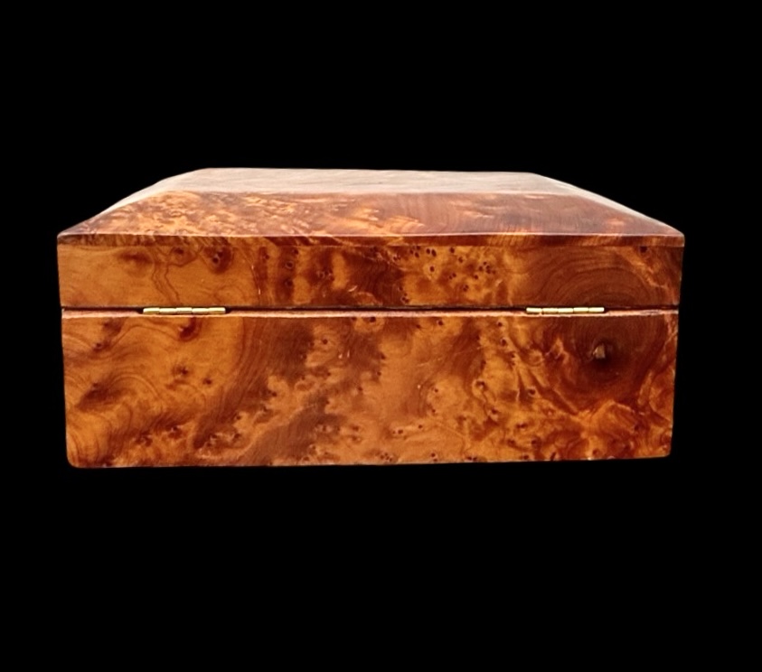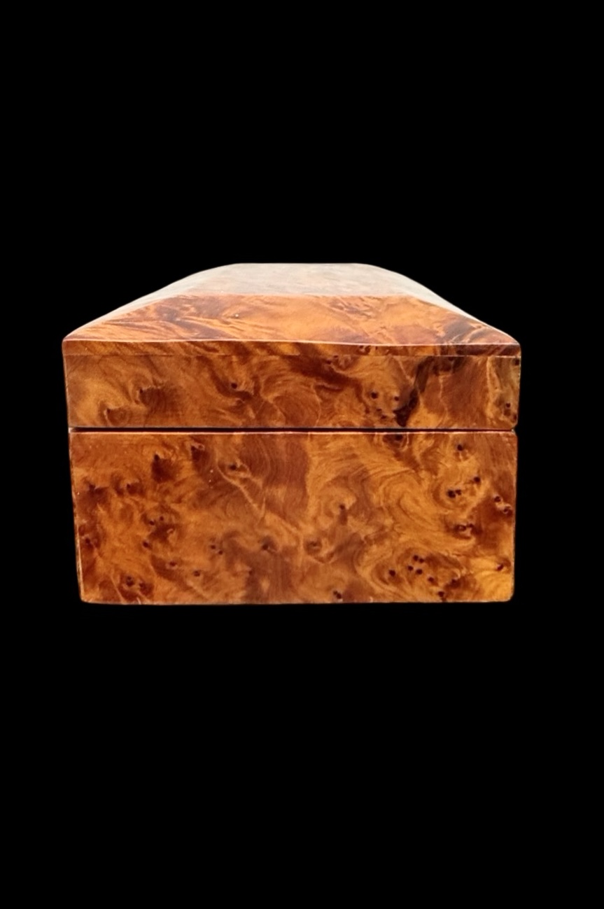 Scatola in radica di tuja.Periodo D’eco’.Cm 20x13x8.