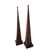 Coppia di grandi obelischi genovesi, lastronati in legno di noce, base modenata ed, ad intervalli, ebanizzata, pigne decorative alle sommità,