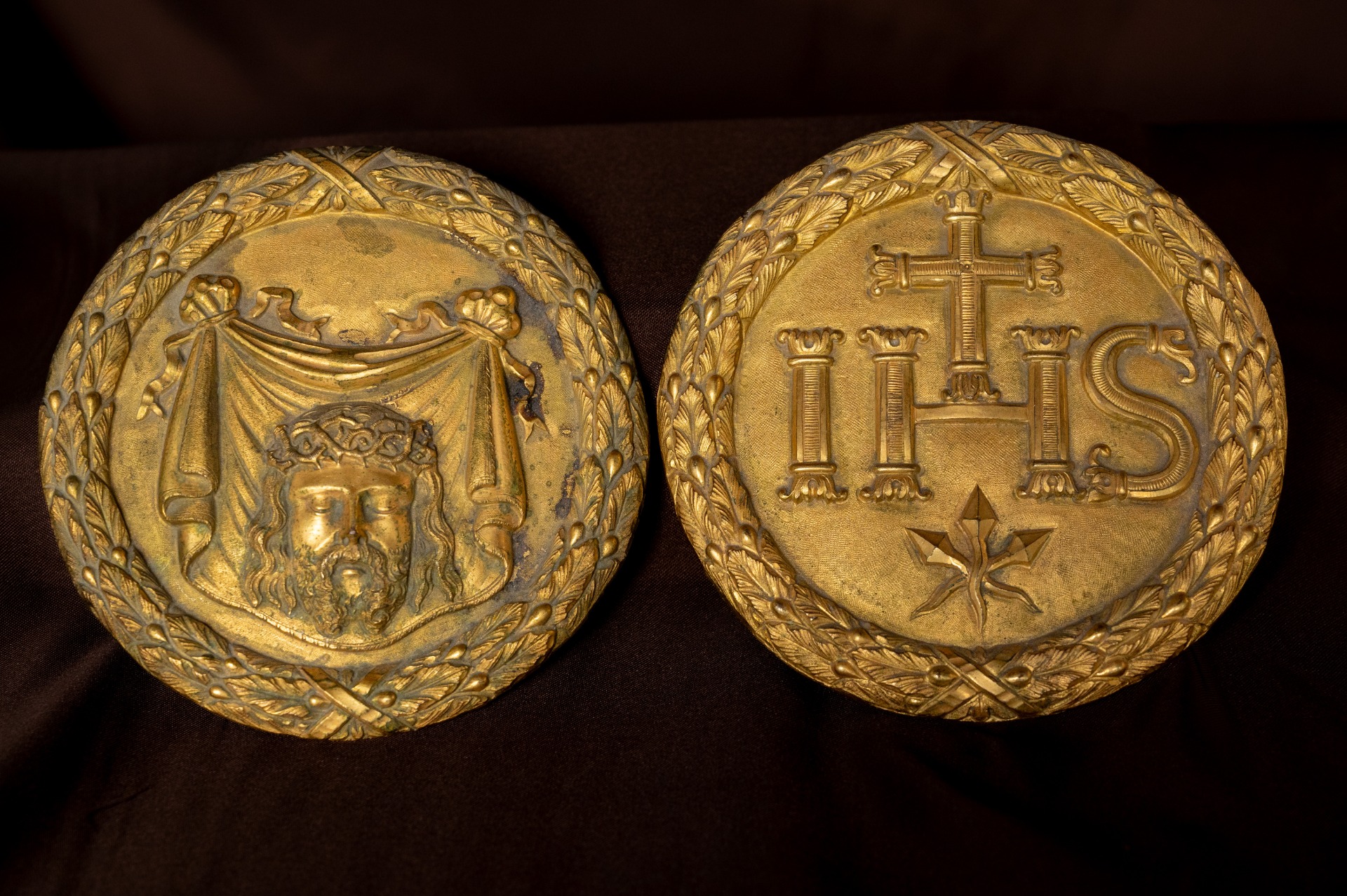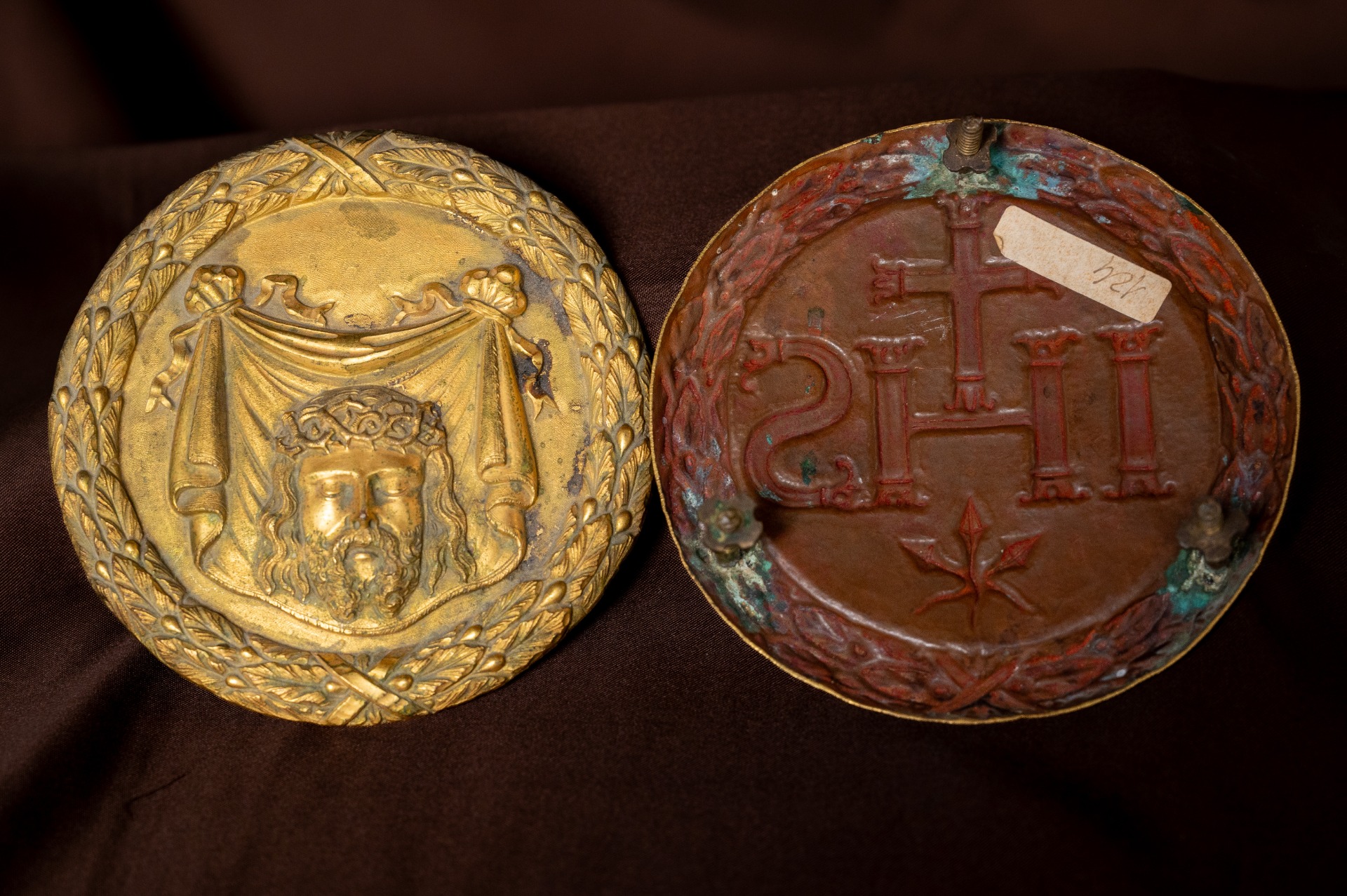 Due medaglioni dorati per arredi sacri - XIX secolo