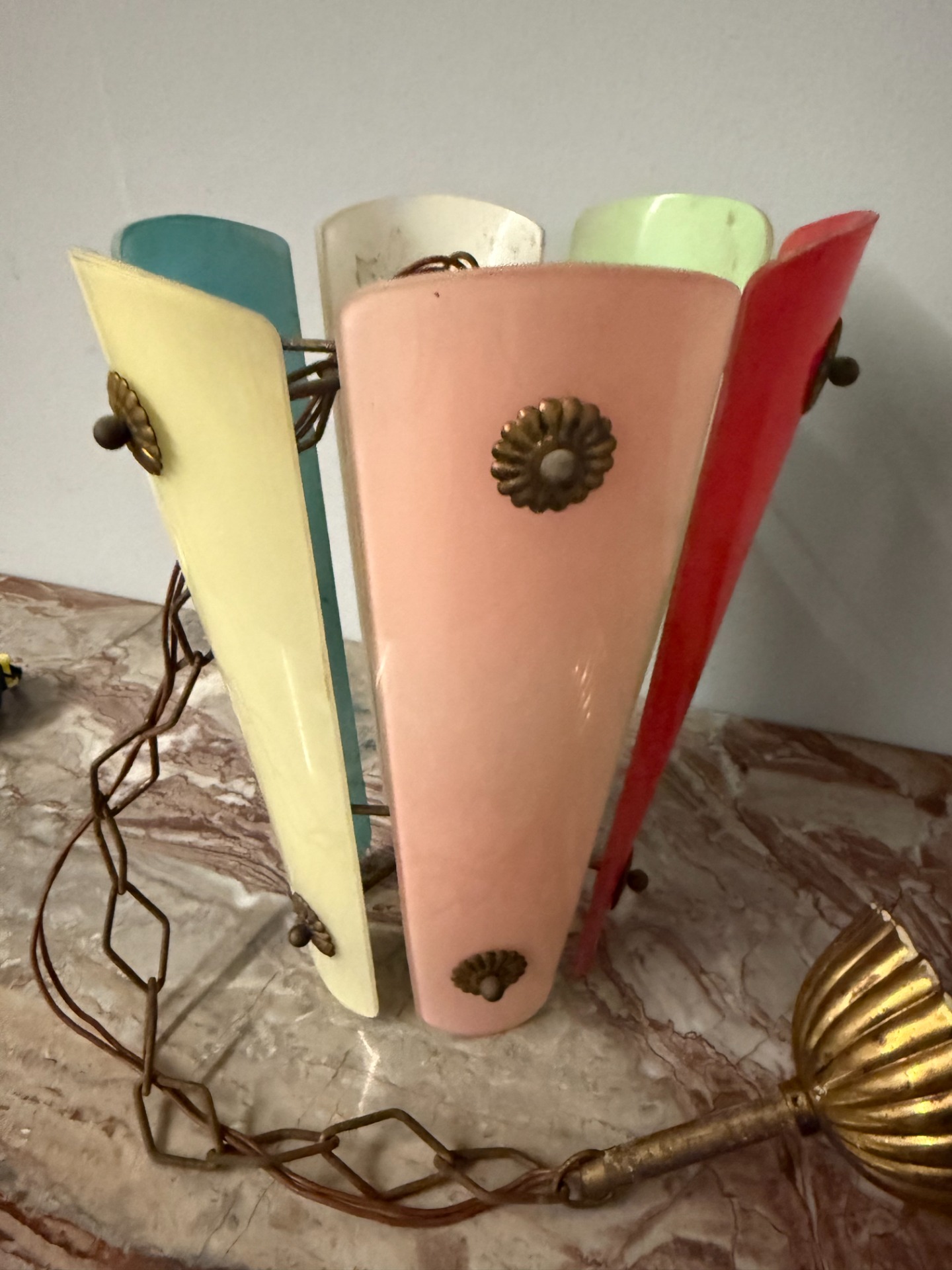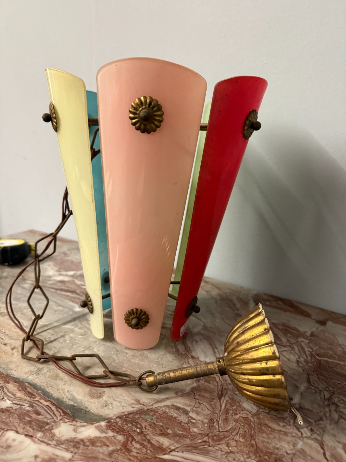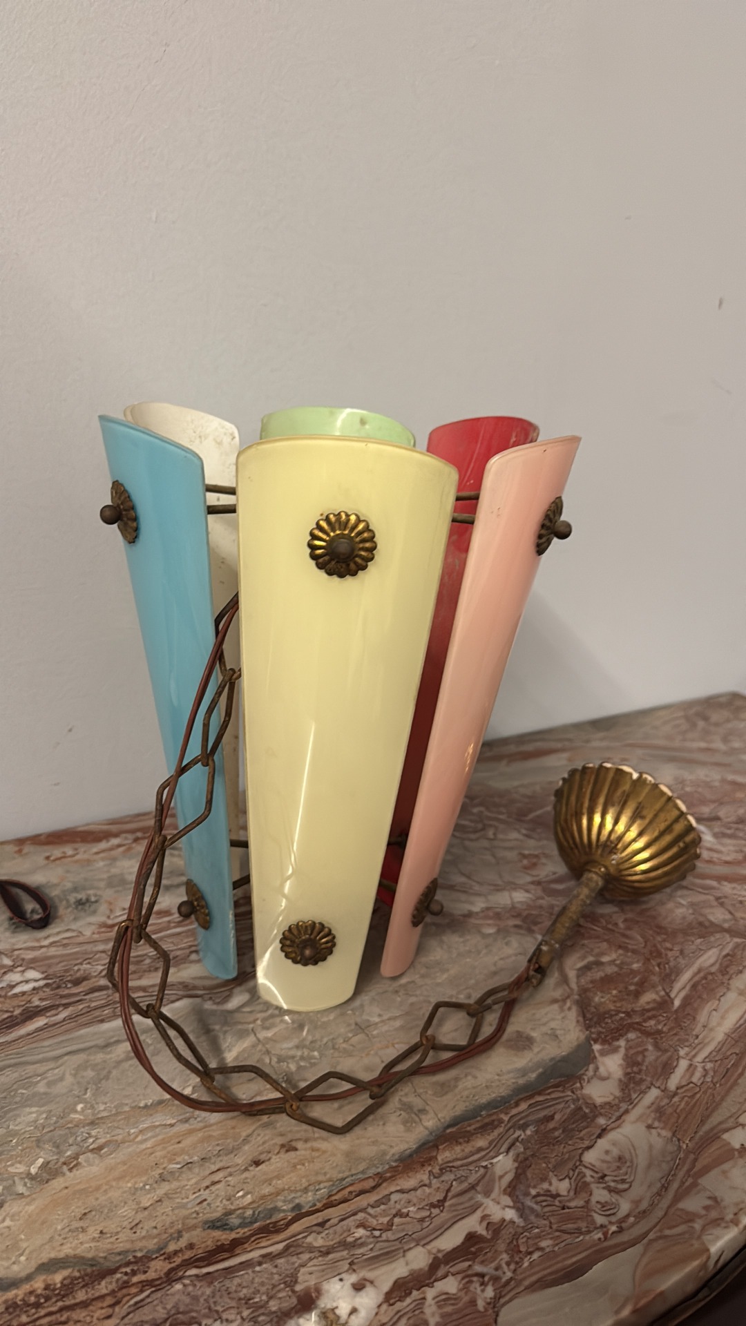 Lampadario anni '50, 26x21cm, modernariato Mid Century in vetri colorati