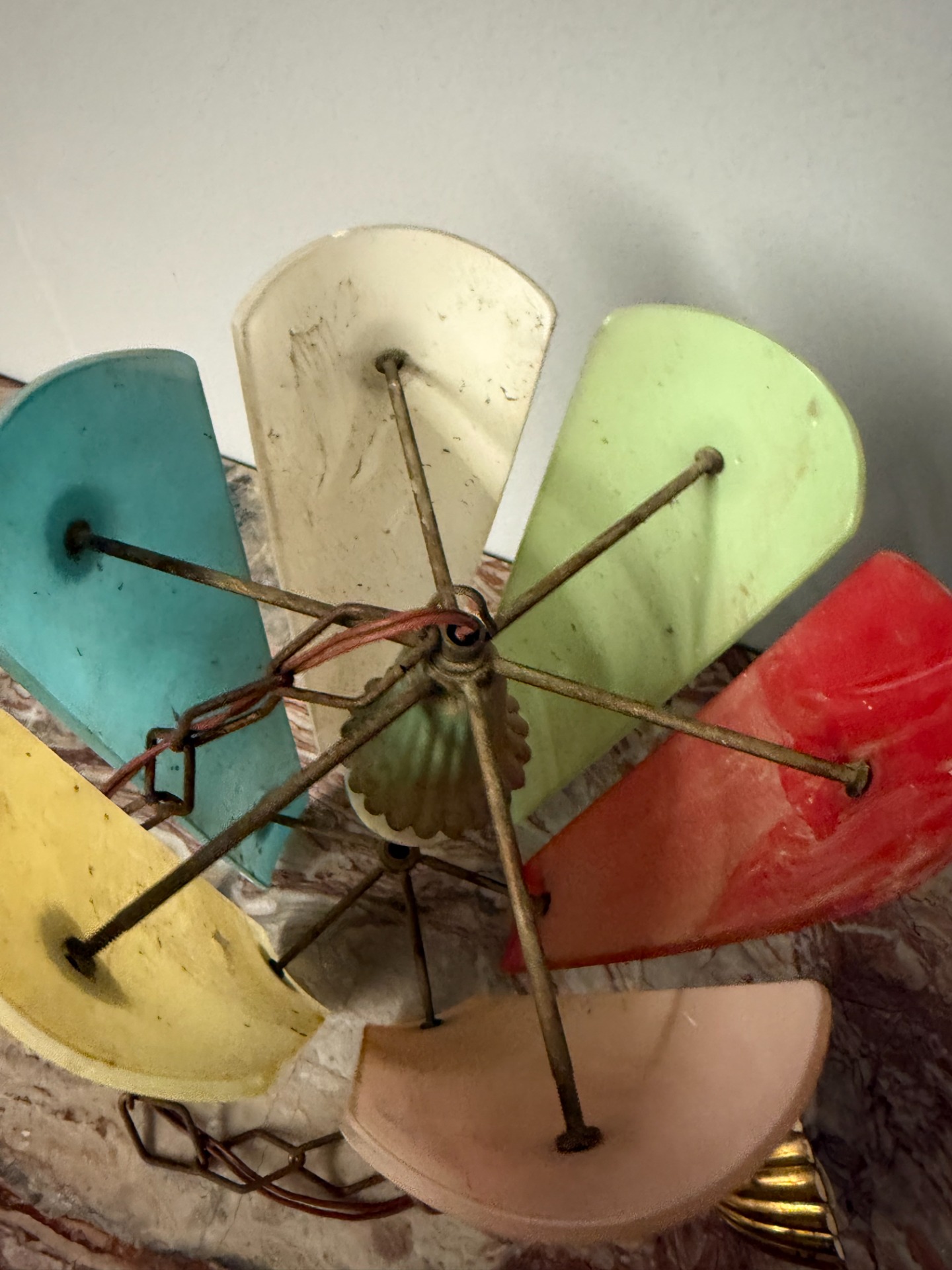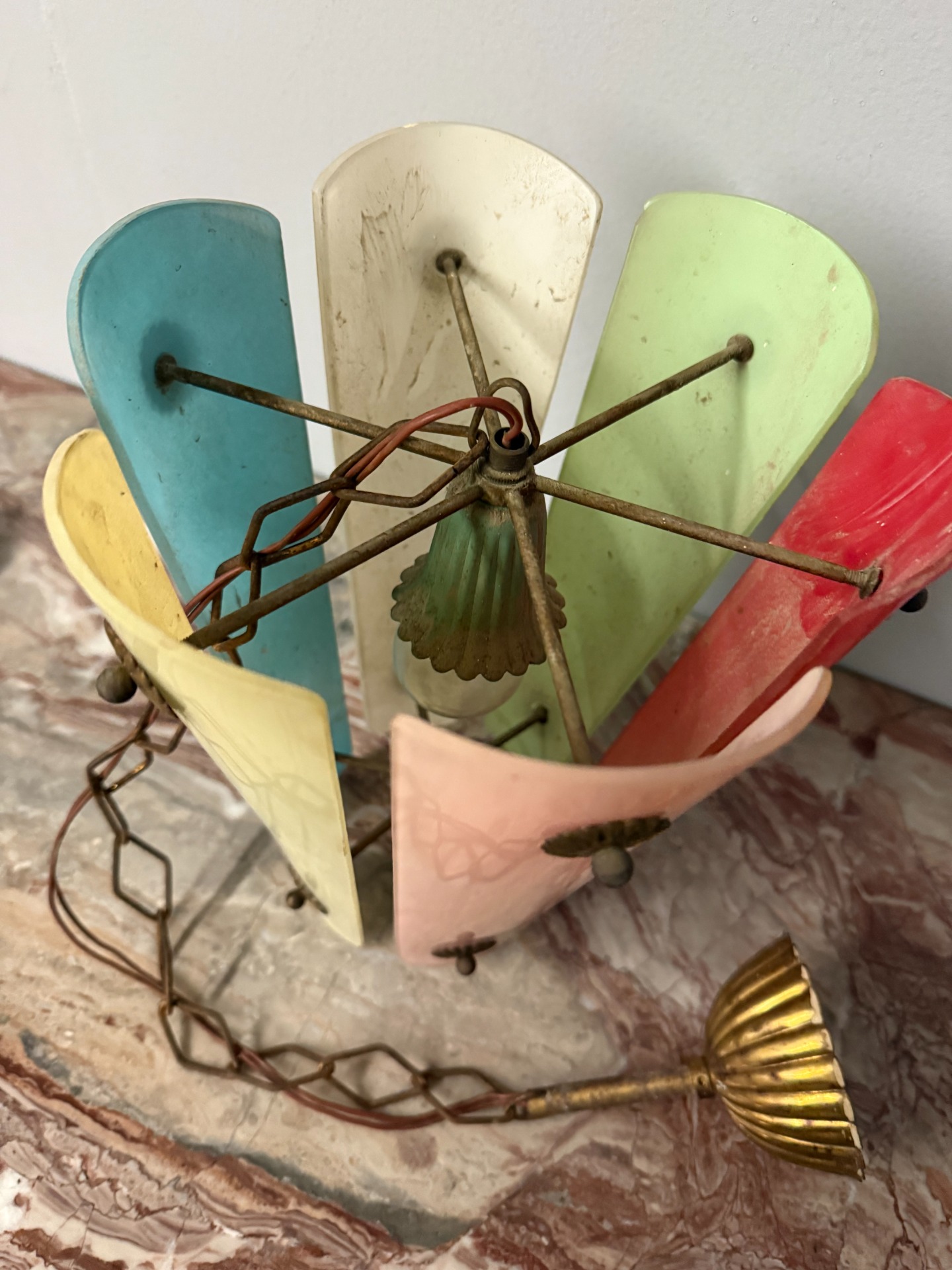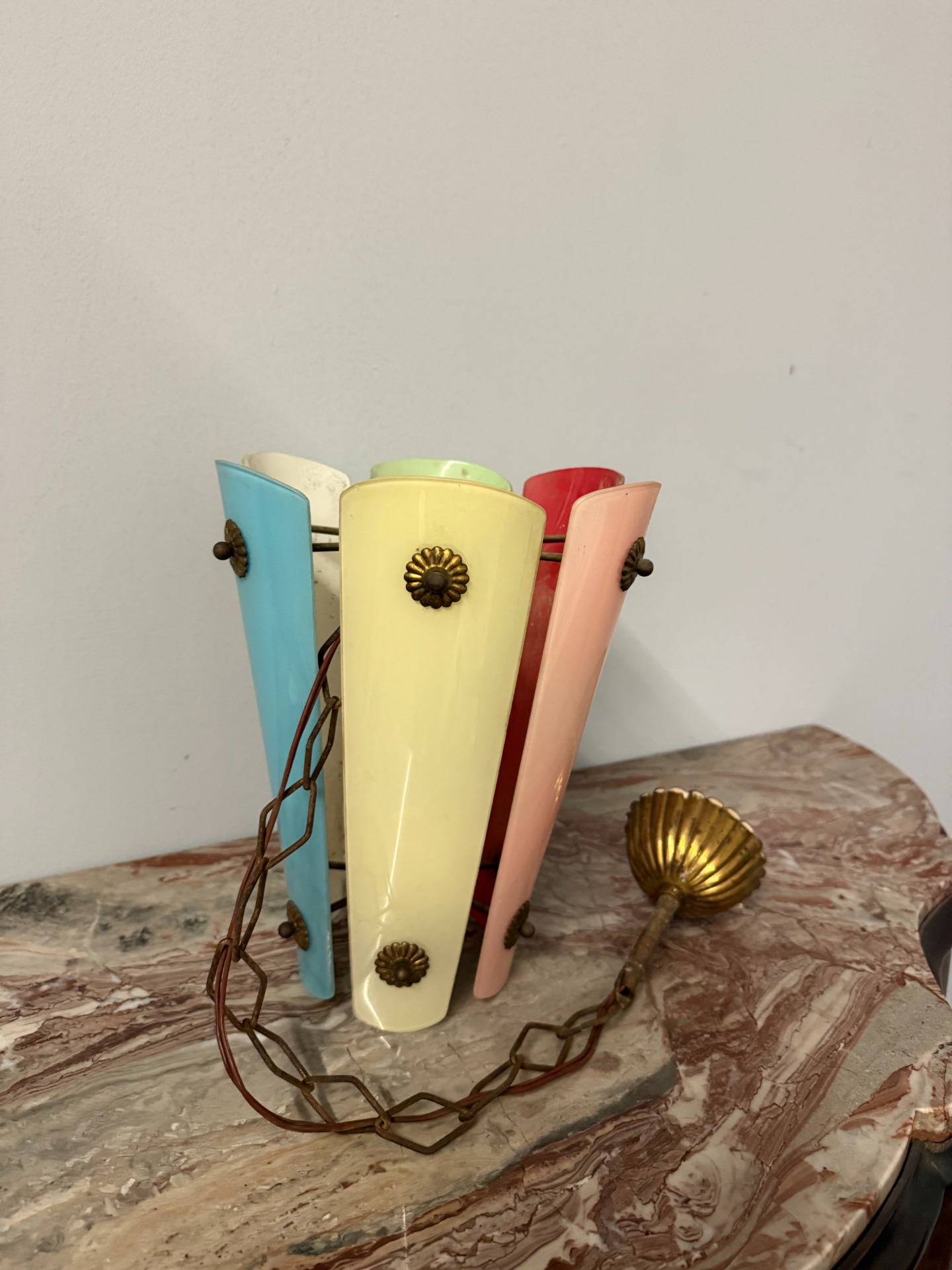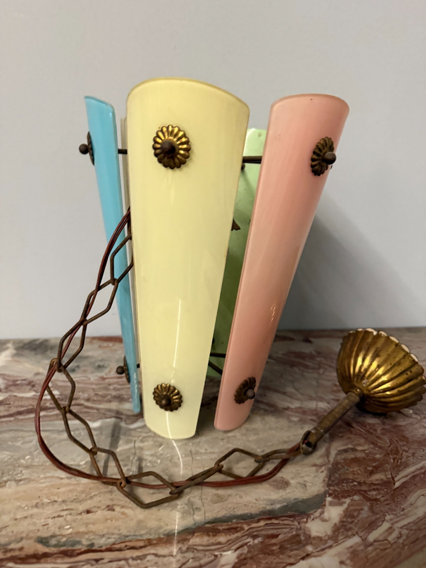 Lampadario anni '50, 26x21cm, modernariato Mid Century in vetri colorati