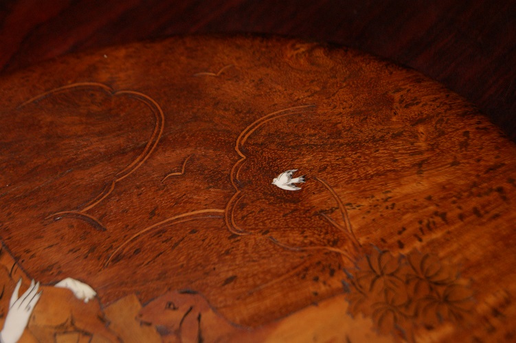 Tavoletta in legno finemente intarsiata Raffigurante Dama con animali in avorio