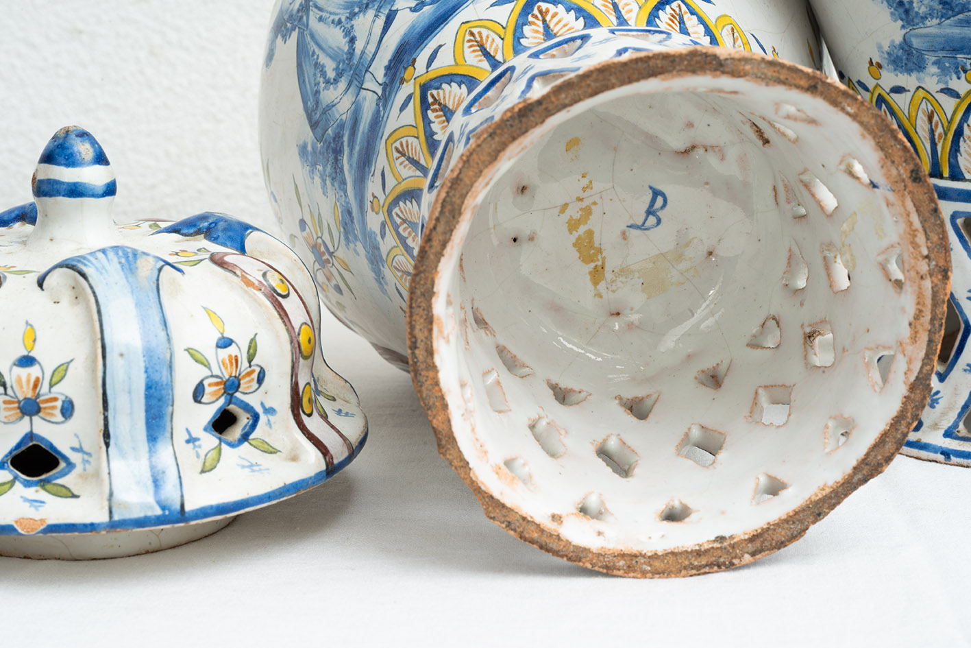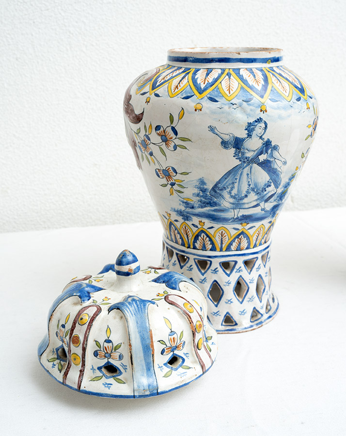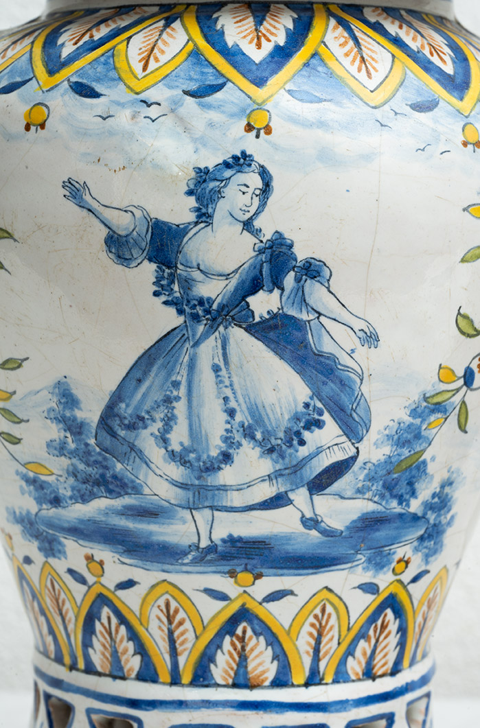 I vasi sono caratterizzati da un medaglione centrale con al centro figure della tradizione veneziana e tutto intorno tutti motivi fogliacei e floreali.