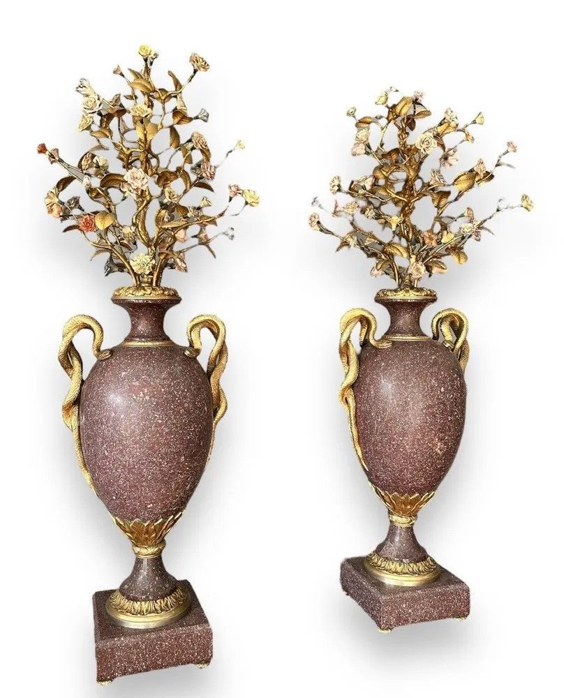 Coppia di Vasi Eleganti in Porfido e Bronzo del XIX Secolo