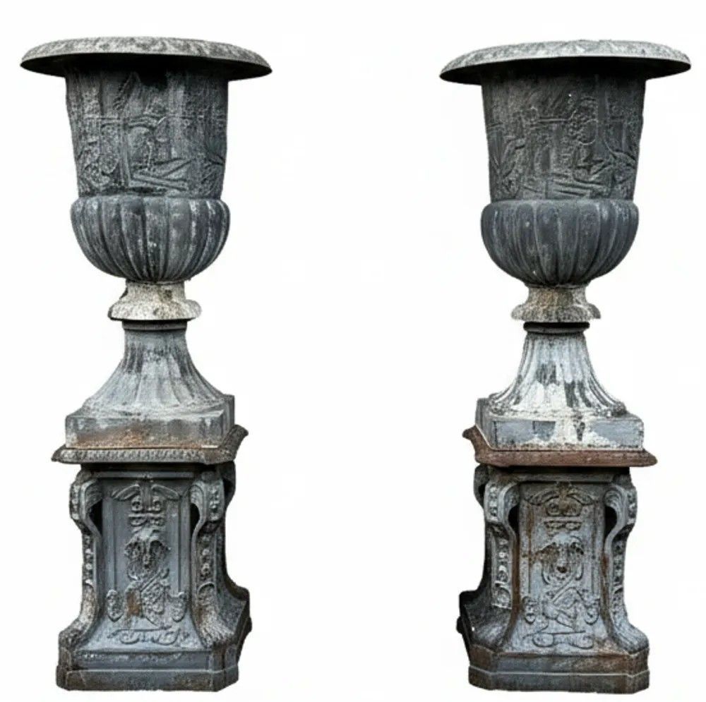 Coppia di vasi in ghisa con basi – Italia primi ’900
