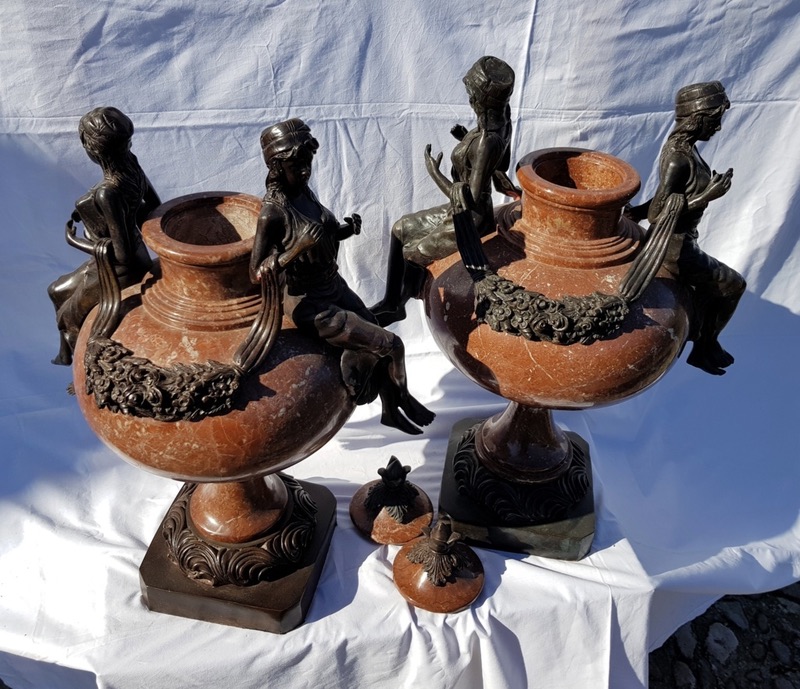 Coppia di vasi in marmo rosso e bronzo. Italia, fine XIX secolo.
