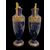 COPPIA DI VASI BIANSATI IN PORCELLANA BLU CON DECORAZIONI DORATE.