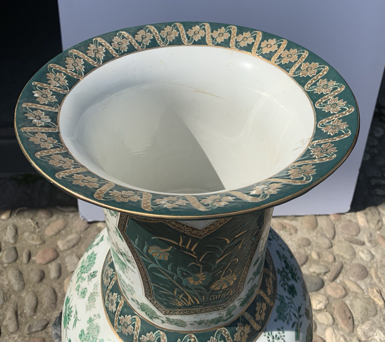 Vaso da centro in porcellana dipinta. Canton Cina, inizi XX secolo. ø33 x h62 cm. Interamente in porcellana finemente dipinta e dorata a motivi vegetali. Al centro due rappresentazioni pittoriche con scene di vita all’aperto. - Ogni articolo viene venduto con certificato di autenticità con validità legale. - Ulteriori approfondimenti sul condition report sono disponibili su richiesta. - Viezzi Arte garantisce qualità e professionalità a prezzi competitivi, contattaci su info@viezziarte.it o via What’sApp al +39 3402841279. *Messaggio rivolto agli acquirenti non italiani: Tieni presente che quest'opera non ha ancora ottenuto il certificato di libera esportazione dall'Italia presso la Soprintendenza dei Beni Culturali. Questo documento attesta che l'opera non fa parte del patrimonio culturale italiano. Normalmente i tempi di rilascio degli attestati sono 40 giorni dalla data di appuntamento: La nuova normativa in vigore dal 2021 prevede, per importi dichiarati inferiori a 13.500€, tempi più brevi a discrezione della commissione di esperti. Tutti i costi di questa operazione sono inclusi.